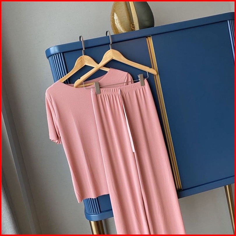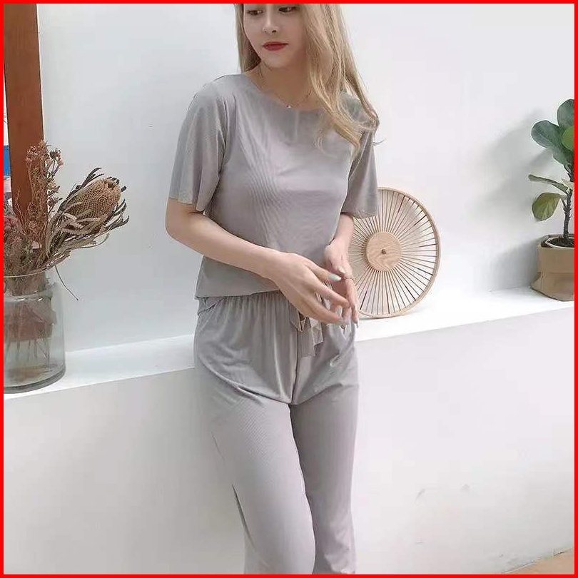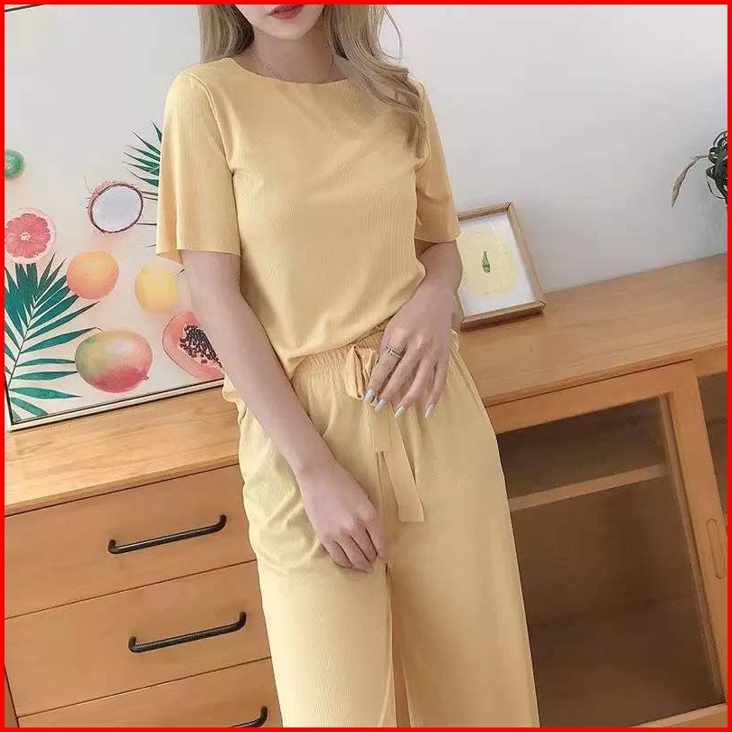 Set Piyama Wanita Polos Set Celana Tangan Pendek Baju Tidur Setelan Lengan Pendek Celana Panjang Cpolos
