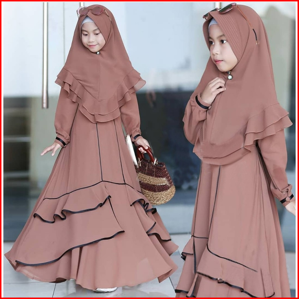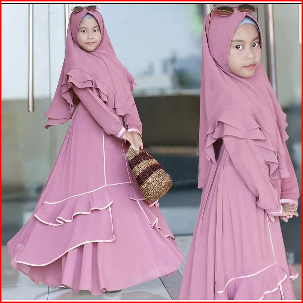 Baju Gamis Anak Plus Hijab Naura Kids Kekinian Termurah