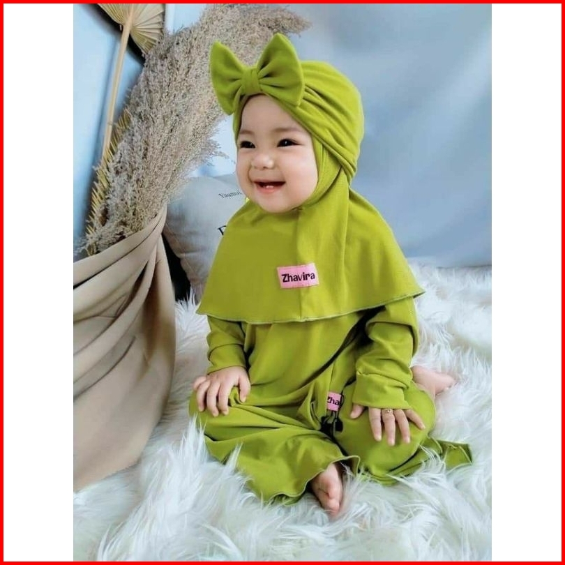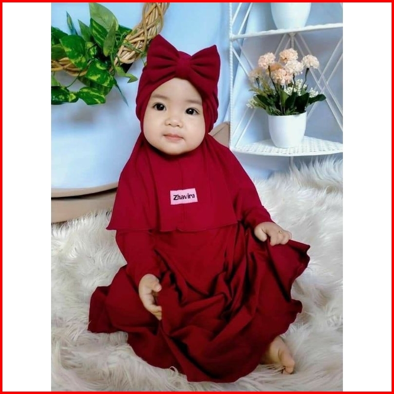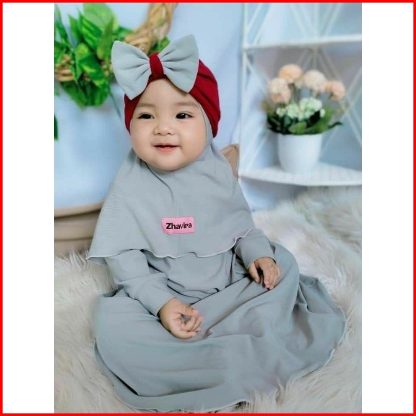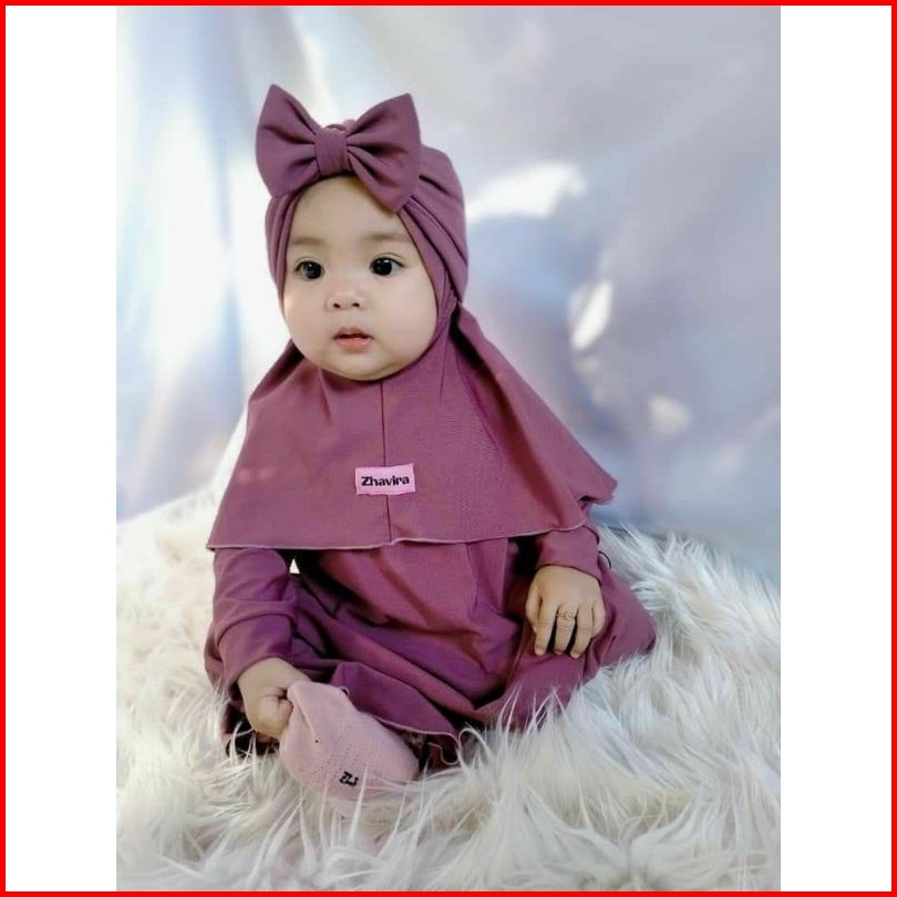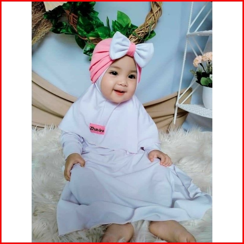 Gamis Anak Balita Usia 0 1 2 3 4 5 6 7 8 9 10 11 12 Bulan 2 3 Tahun Azibah Set Hijab Pakaian Bayi Perempuan