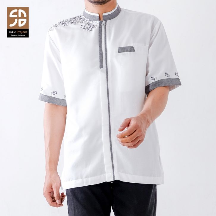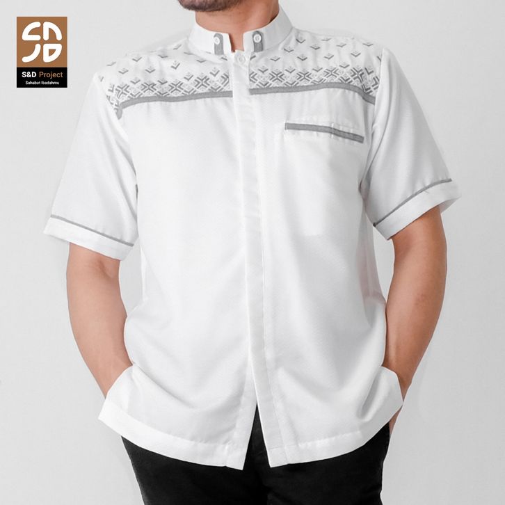 Baju Pria Koko Muslim Seri 20 Bordir Polikatun Putih Tulang Ukuran Jumbo S - 4XL Lengan Pendek