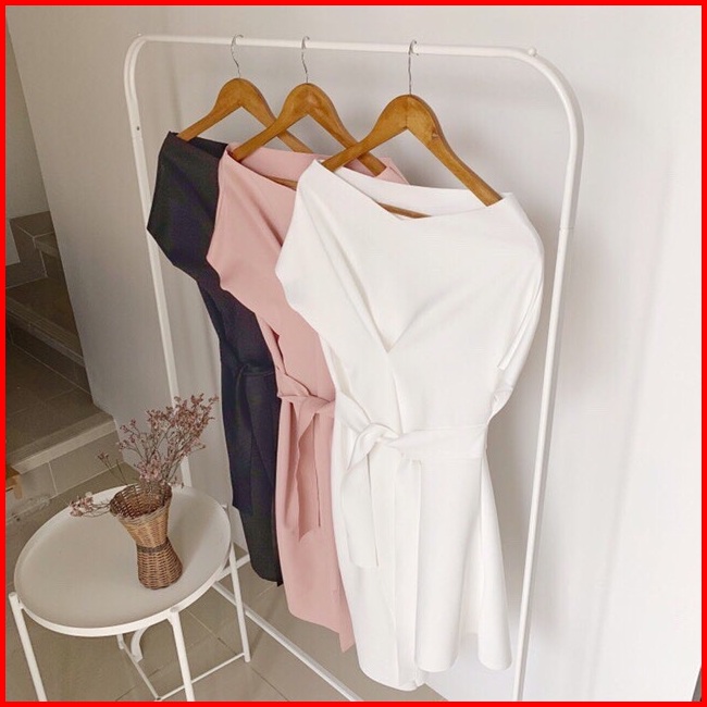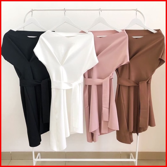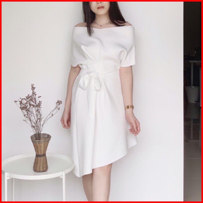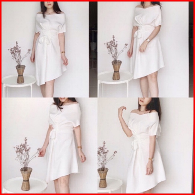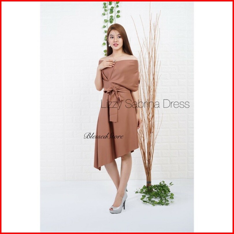 D0124 Lizzy Korean Sabrina Vintage Dress Scuba Assymetris