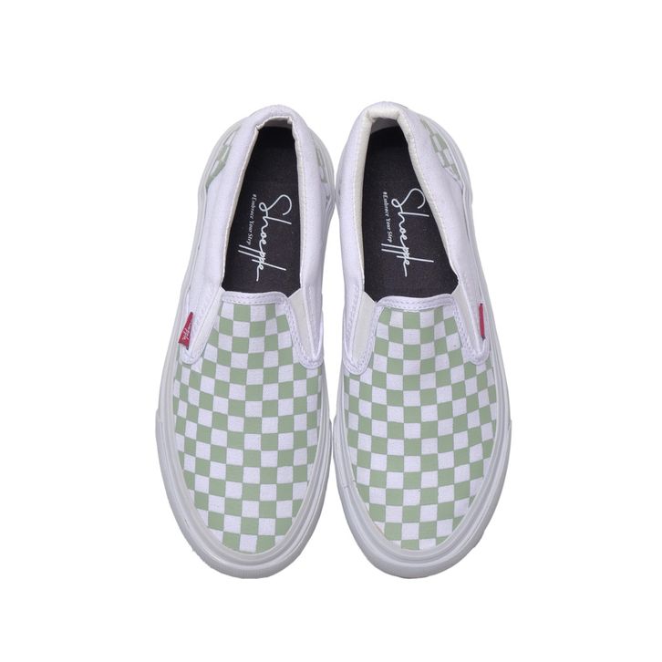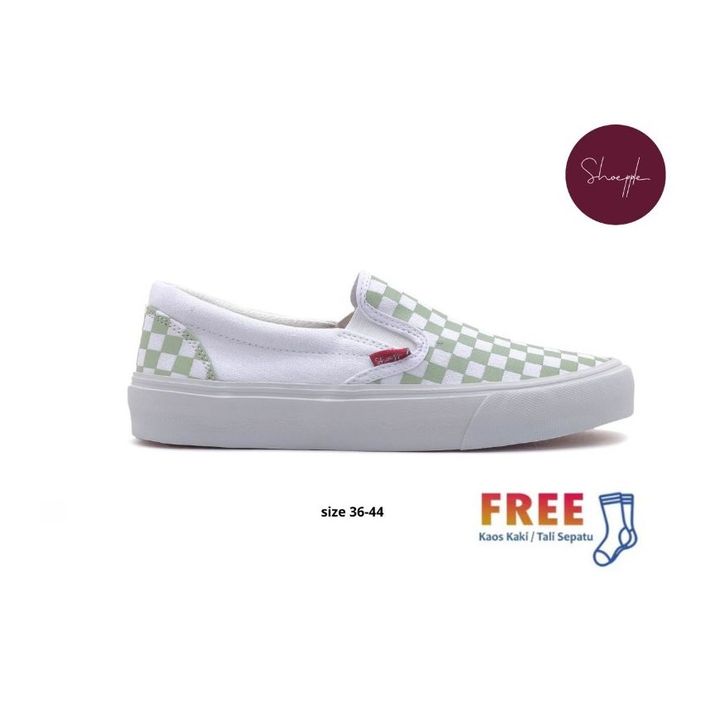 Sepatu Slip On Shoepple Hasepsut Kuta Sepatu Sneakers Unisex | White Mint Checkerboards | Slip On Vulcanized | Sneakers