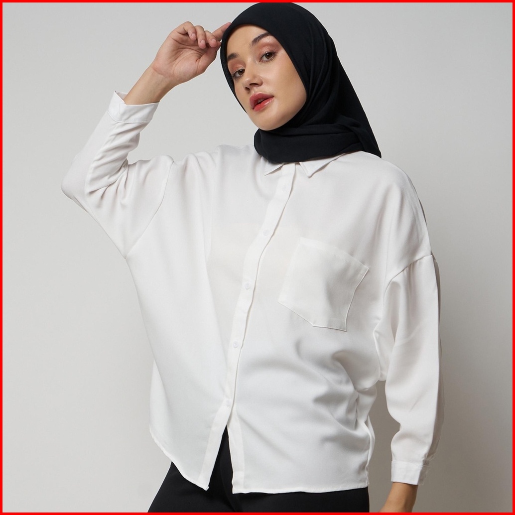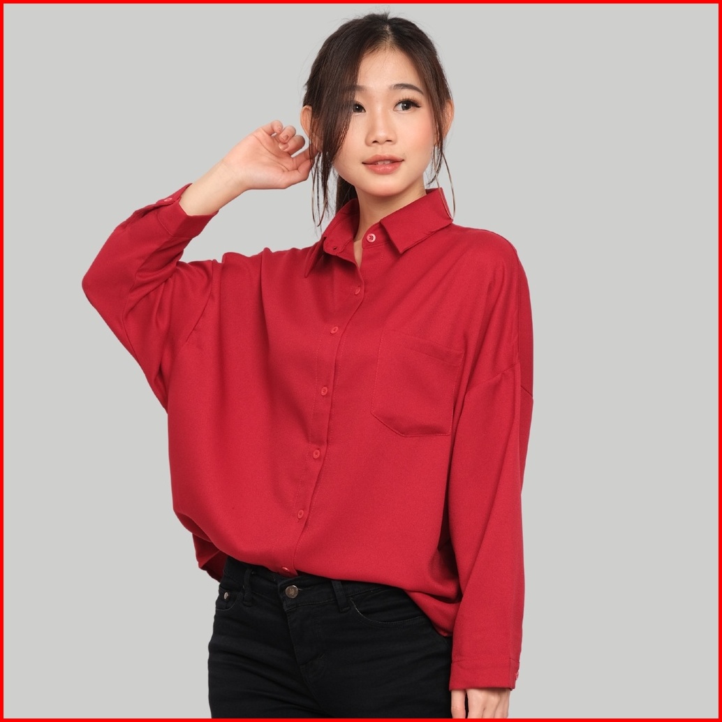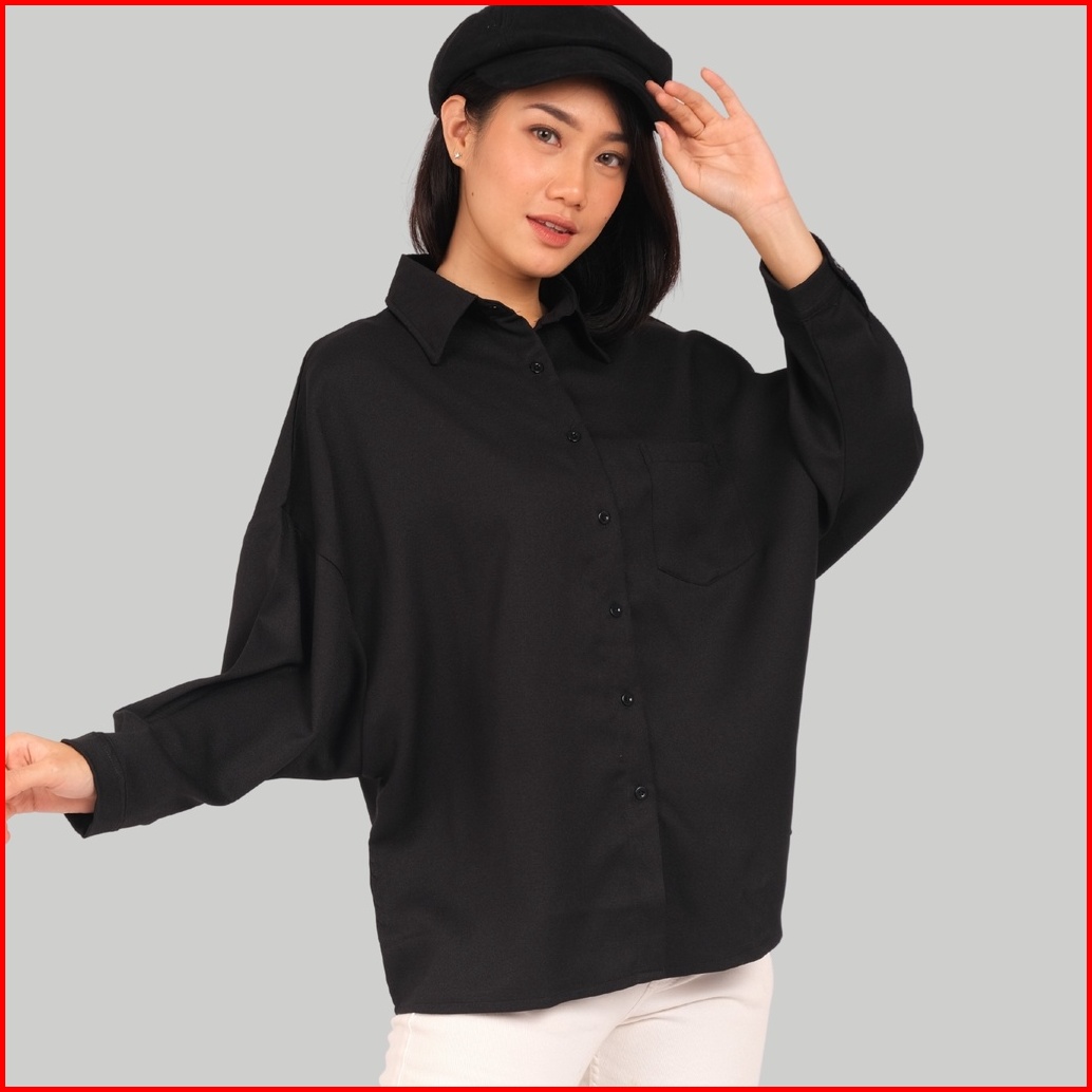 Monellina Balbi Kemeja Oversize Wanita Batwing Lengan Panjang Polos