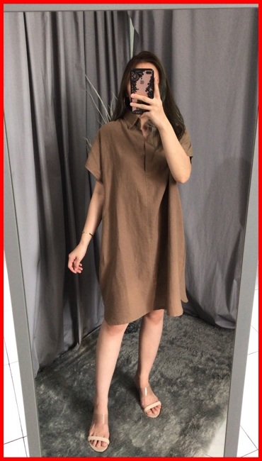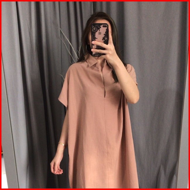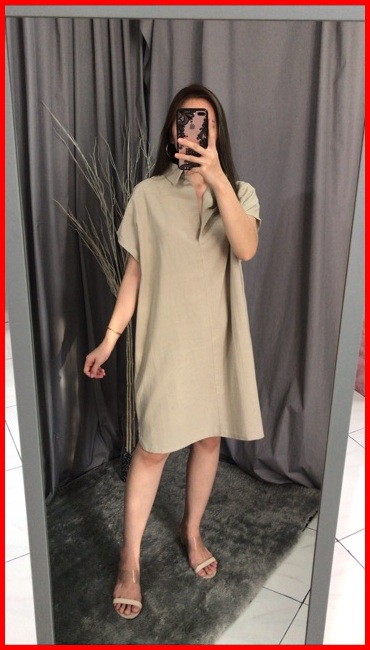 Vorra Linen Dress Fashion Dress Oversized Lengan Pendek Bumil Busui Friendly Ready
