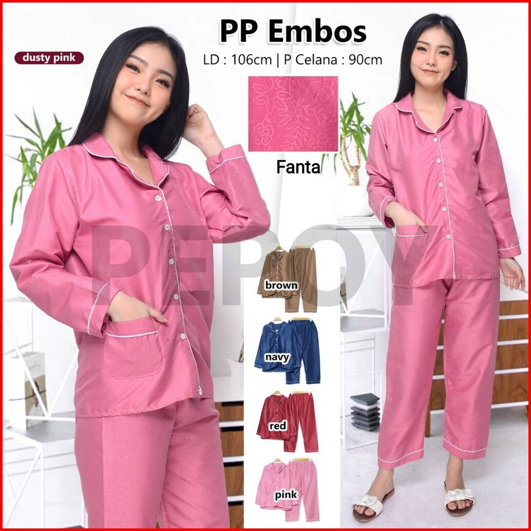 Pepoy Shop Stelan Piyama Baju Tidur Tangan Panjang Pp Embos Motif Wanita Ld 104 Cm