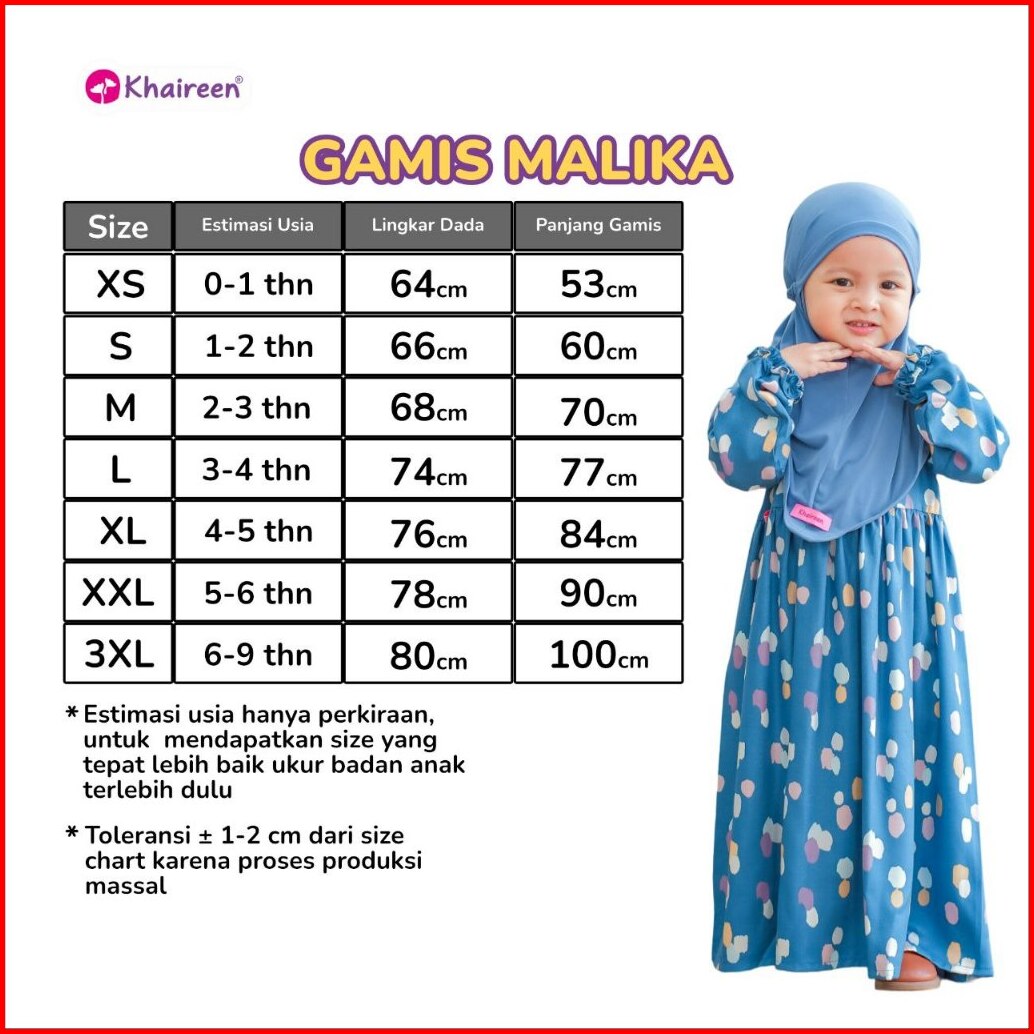 Khaireen Gamis Malika Kids 0-9 Tahun Gamis Anak Set Hijab Gamis Anak Katun Gamis Anak Katun Motif