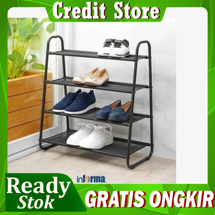 CREDIT STORE Informa Benneth Rak Sepatu 4 Tingkat - Hitam Shoe Rack Organizer Sandal Sepatu Kabinet Alas Kaki Tempat Pen