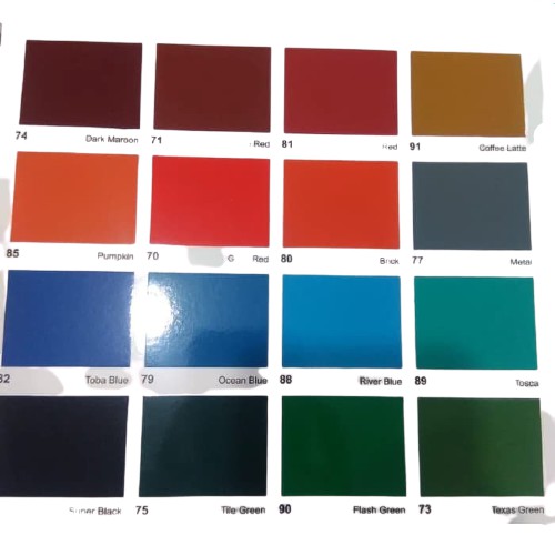 71 - TILE RED, 73 - TEXAS GREEN, 74 - DARK MAROON, 80 - BRICK, 81 - CHILI RED, 82 - TOBABLUE, SB - SUPER BLACK, 77- METAL