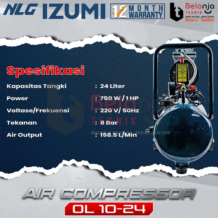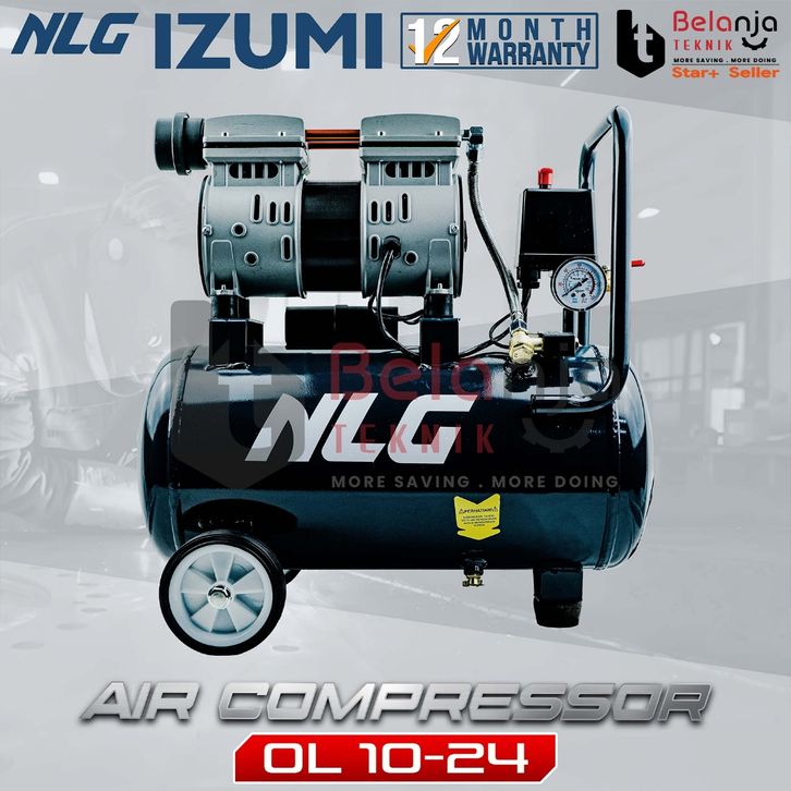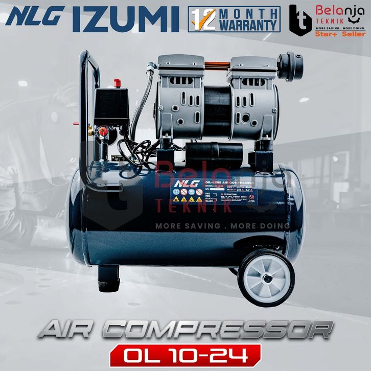 TERBARU Izumi NLG Mesin Kompressor Angin Portable 1 HP 24 Liter Oilless Air Compressor Tanpa Oli 750 Watt