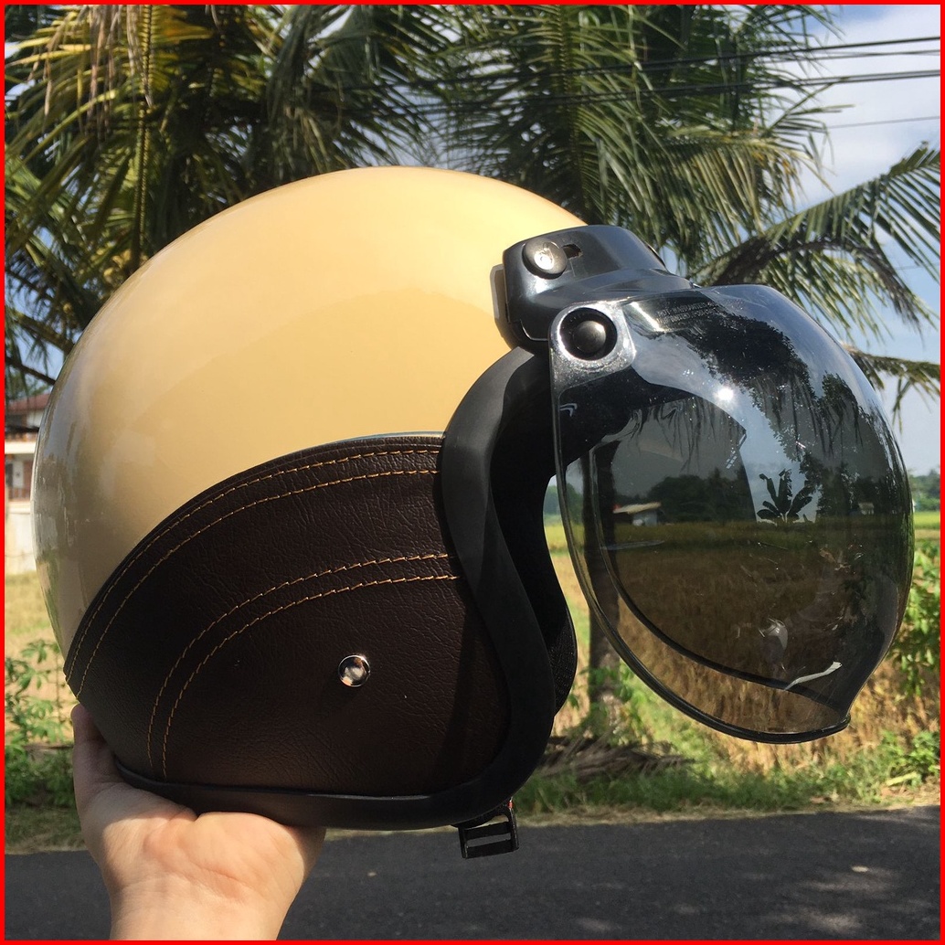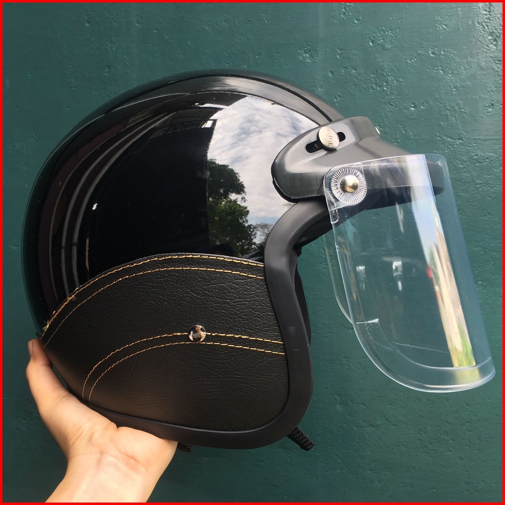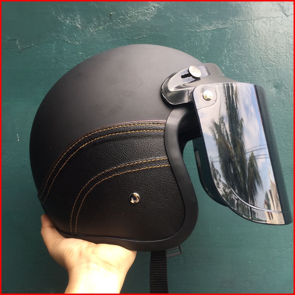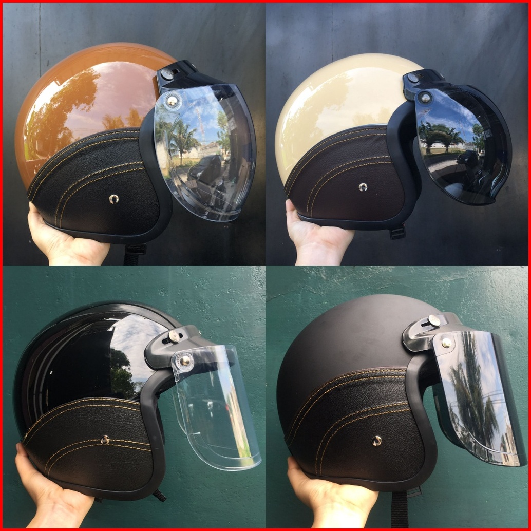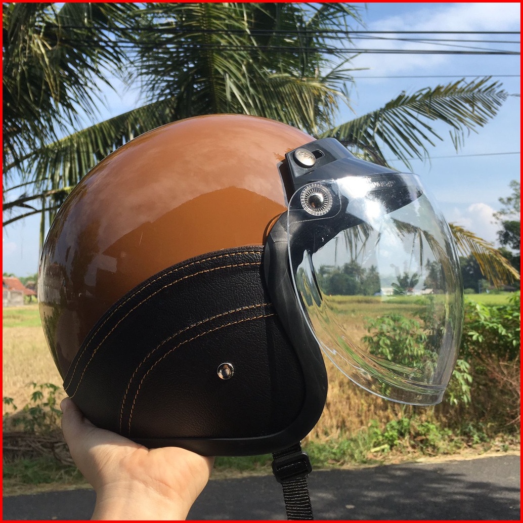 Helm Bogo Dewasa Semi Kulit Visor Flat Cembung