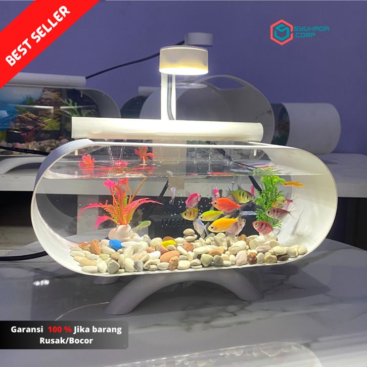 M.B 1 Set Aquarium depan belakang akrilik transfaran dan Mesin filter sirkulasi Air mancur dan Lampu LED 3 WATT(AK01)