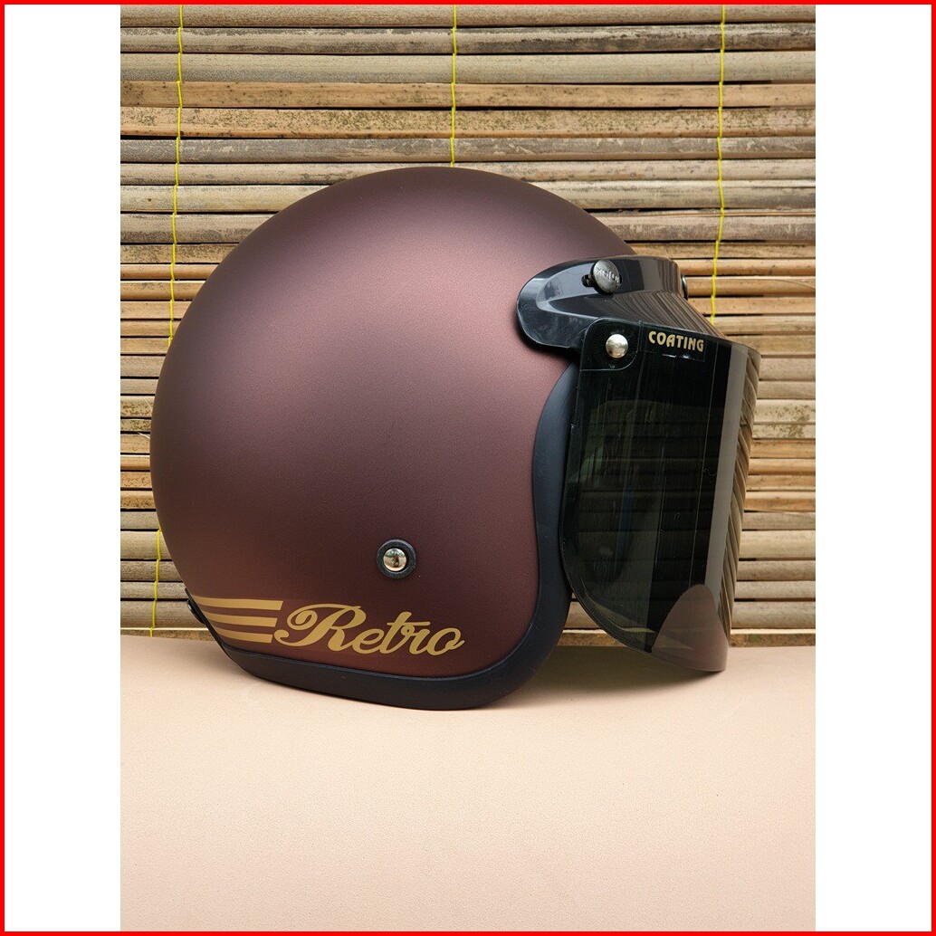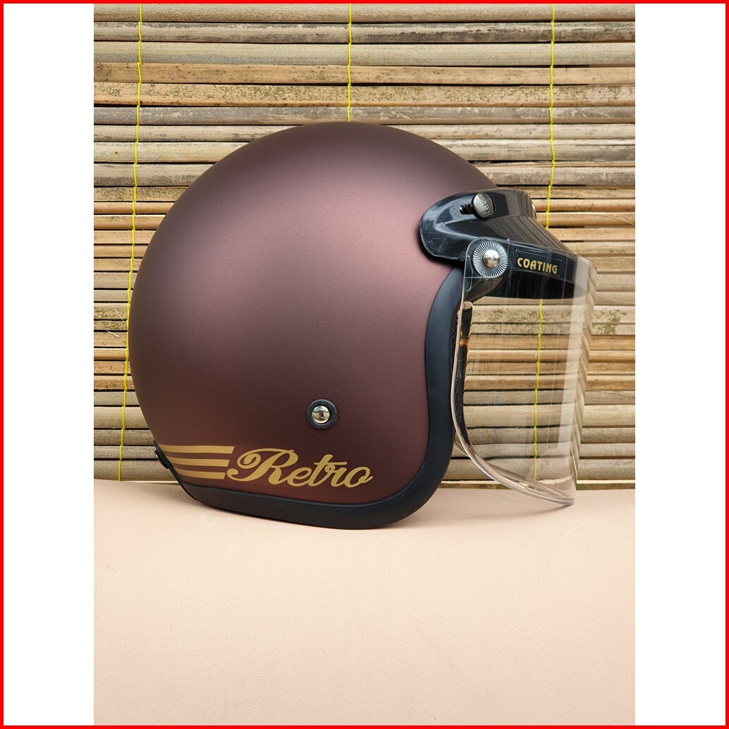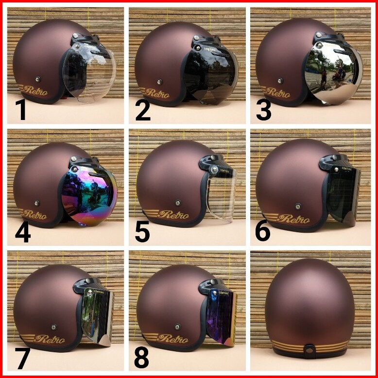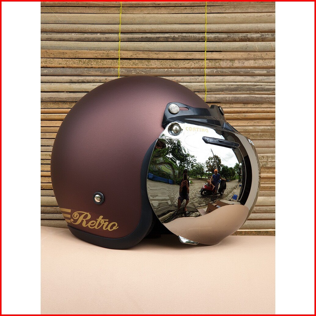 Helm Bogo Dewasa Retro Coklat Dof Kaca Flat Datar Dan Cembung Bening Clear Hitam Smoke Silver Pelang