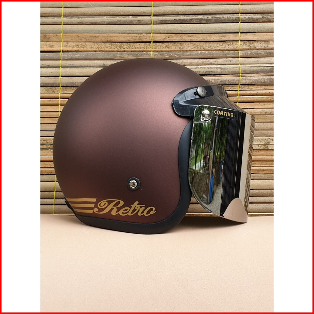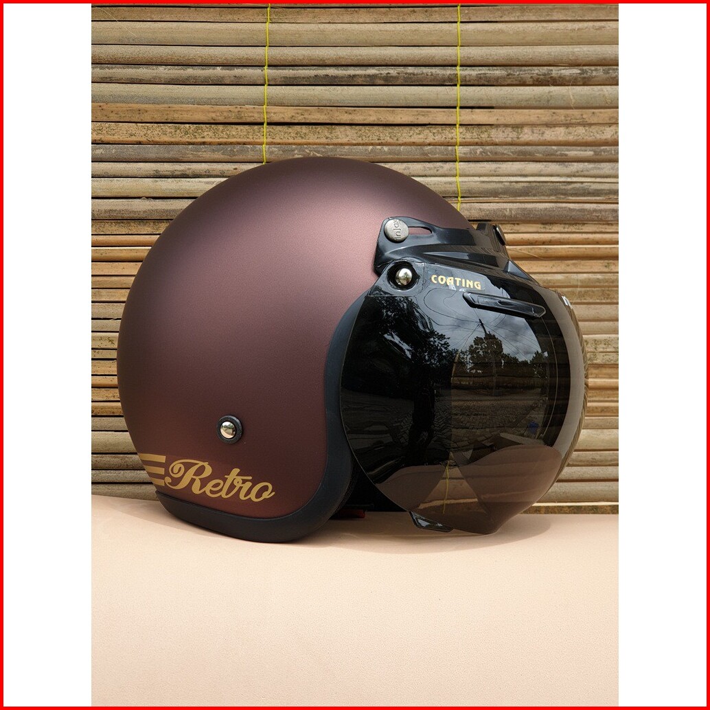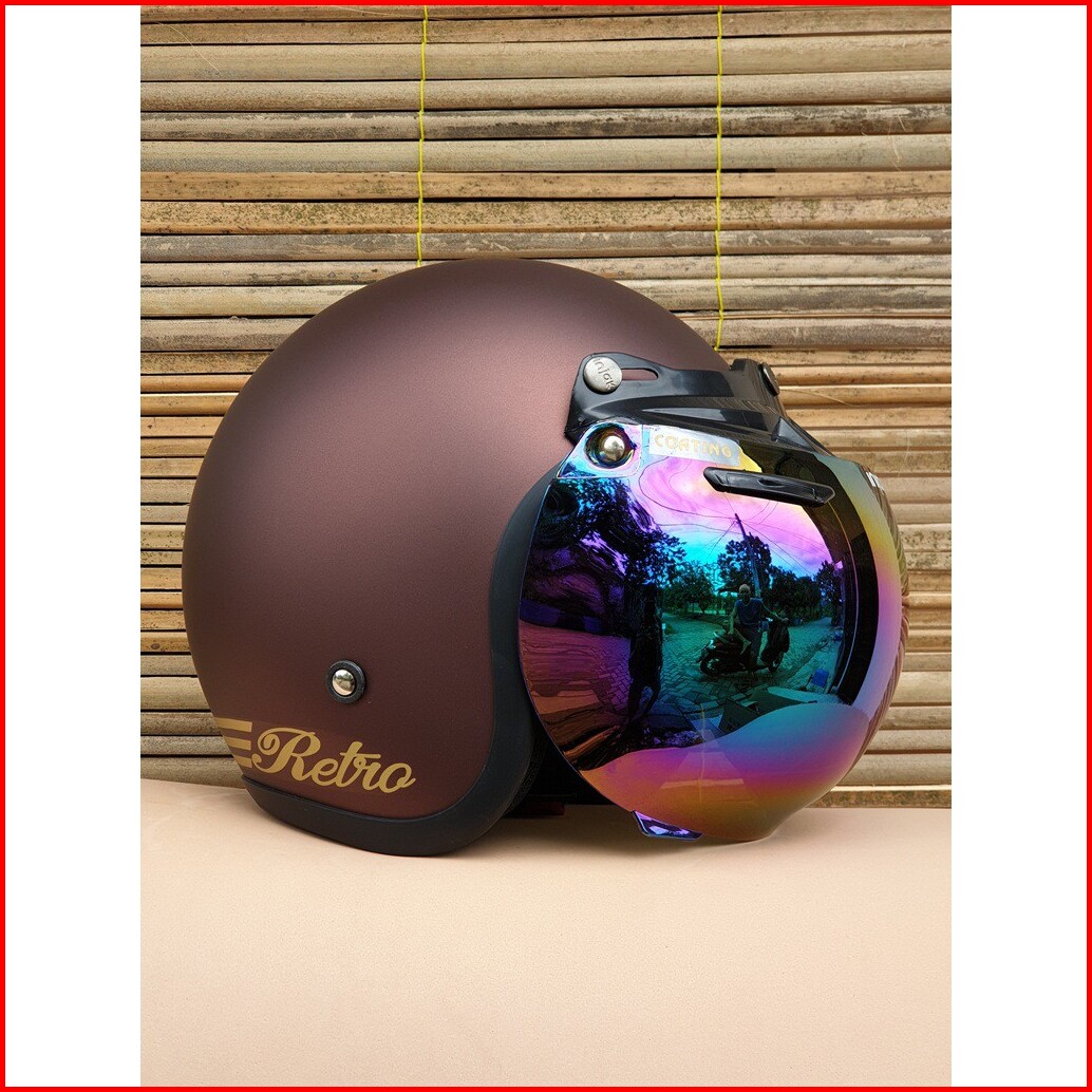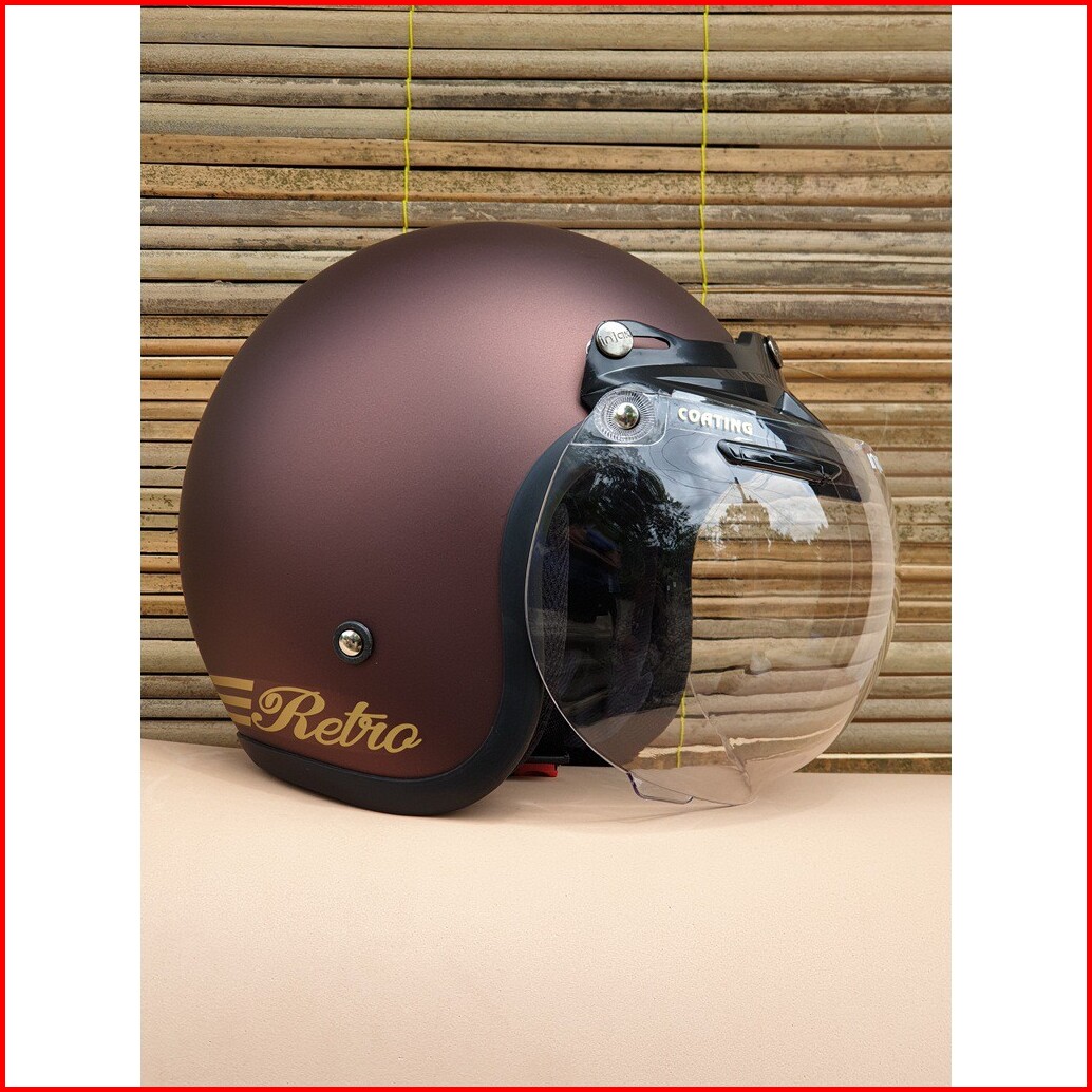Helm Bogo Dewasa Retro Coklat Dof Kaca Flat Datar Dan Cembung Bening Clear Hitam Smoke Silver Pelang