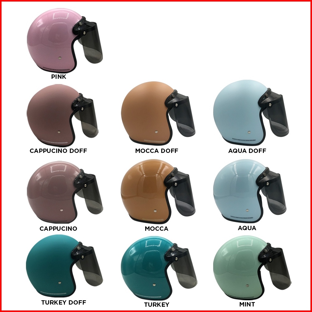 Legacy Helm - Helm Bogo Dewasa Wanita Full Leher Warna Pastel Kaca Datar Polos Retro Sni Kekinian
