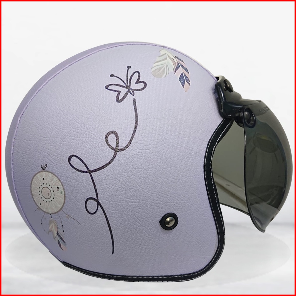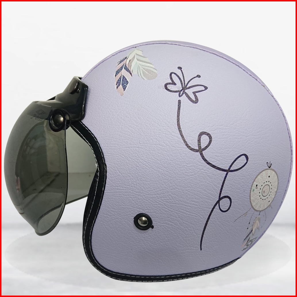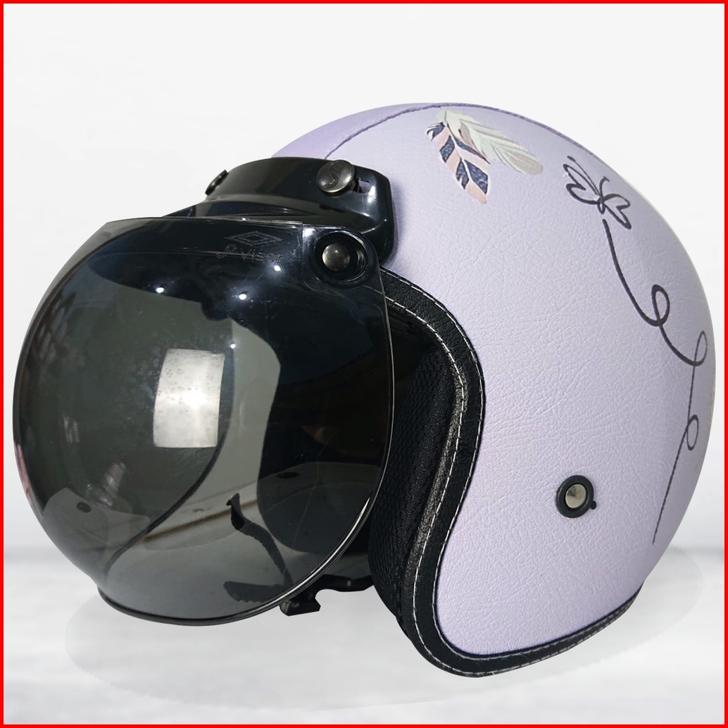 Helm Bogo Retro Kulit Cewek Dewasa Anak-anak Kupu Kupu Ungu Murah Free Tambah Nama