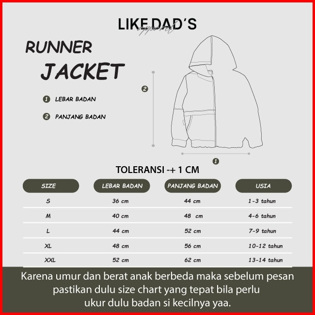 Like Dads Jaket Anak Laki Laki Windbreaker Bolak Balik - Runner