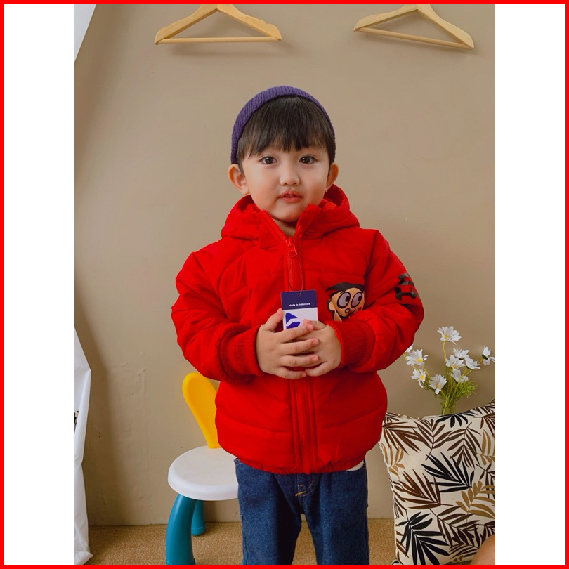 Jaket Winter Anak Puffer Laki Laki Perempuan Unisex Cewe Cowo Motif Sablon Karakter Wajah Badut Lucu