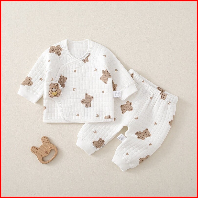 100 Cotton Setelan Anak Unisex Usia 0-6 Bulan Motif Bear Brown Baju Kimono Bayi Lucu