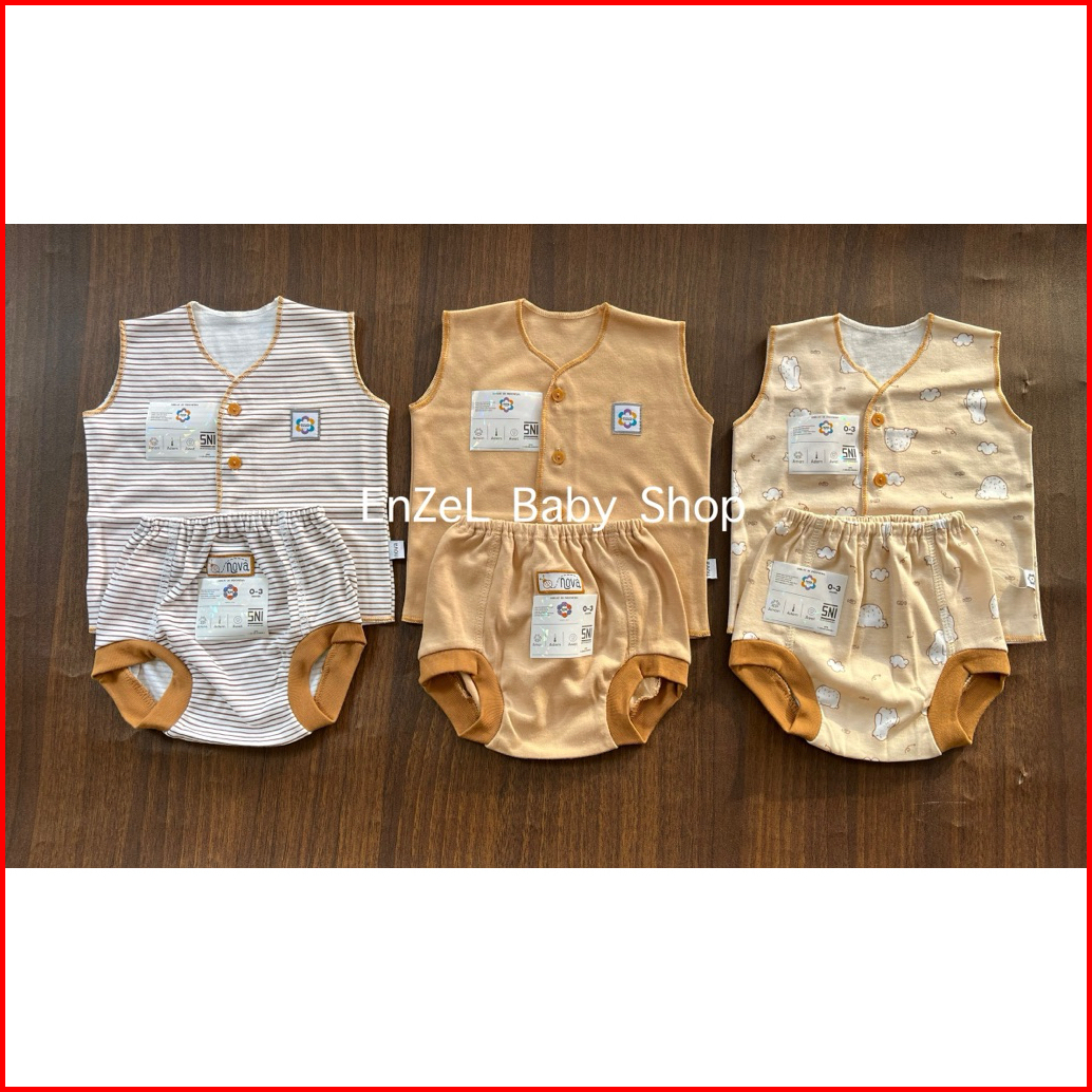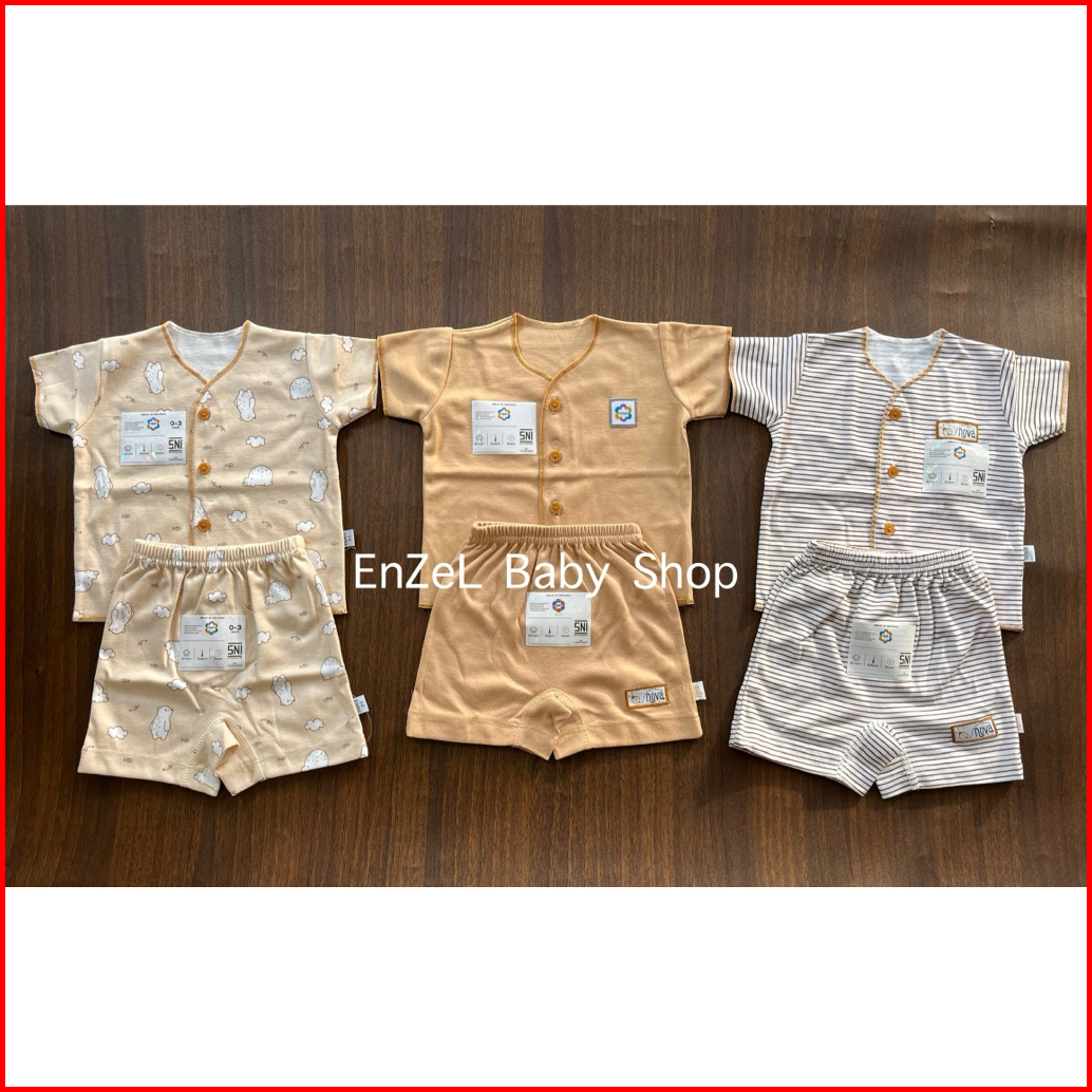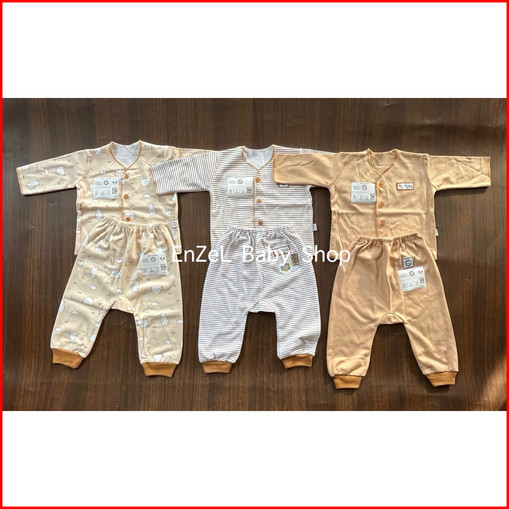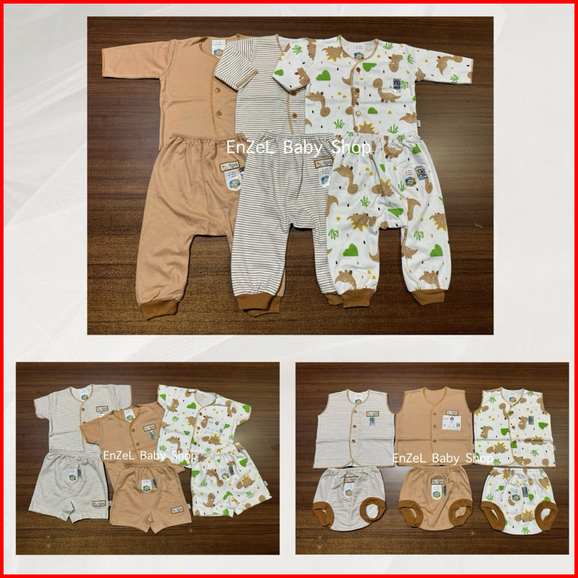 Nova 3 Setelan Bayi Baju Celana Seri Coklat Motif 0-3 Bulan Setelan Panjang Setelan Pendek Setelan Kutung Sni