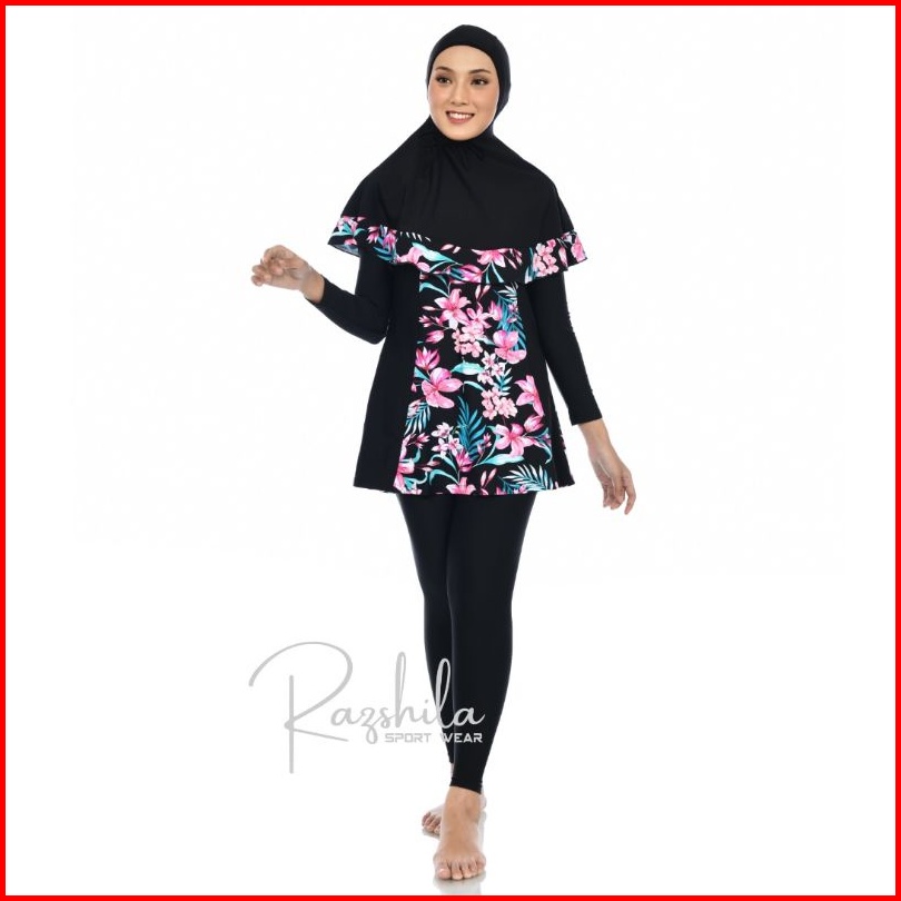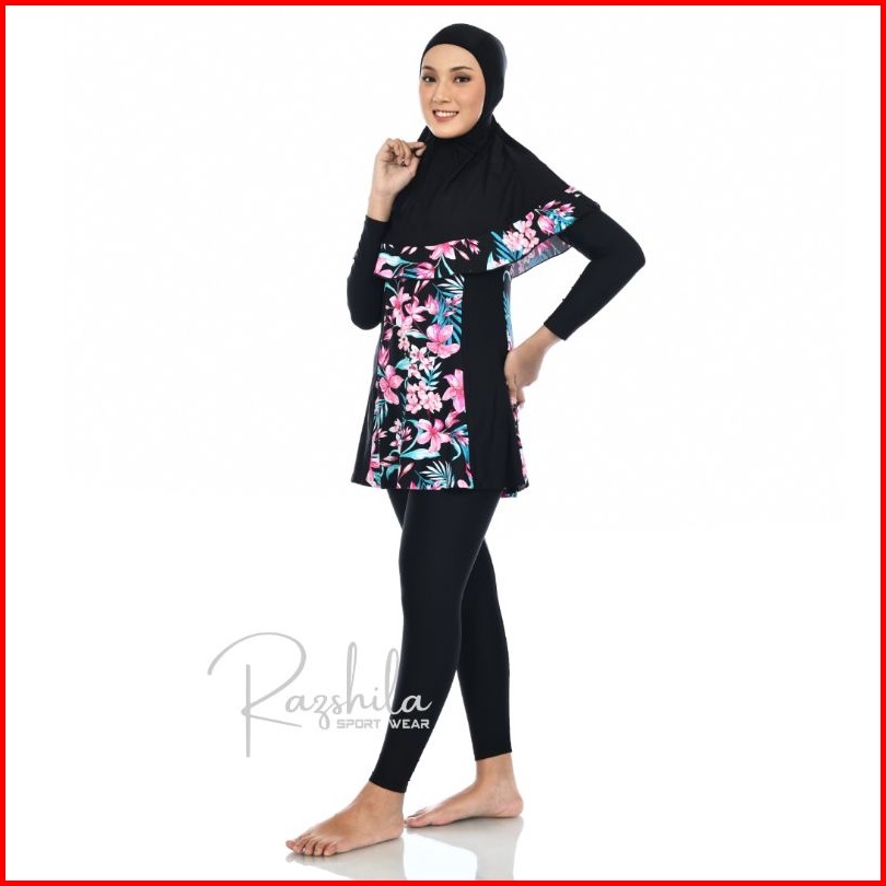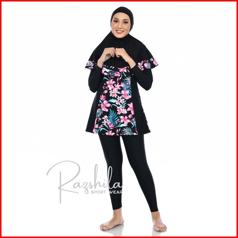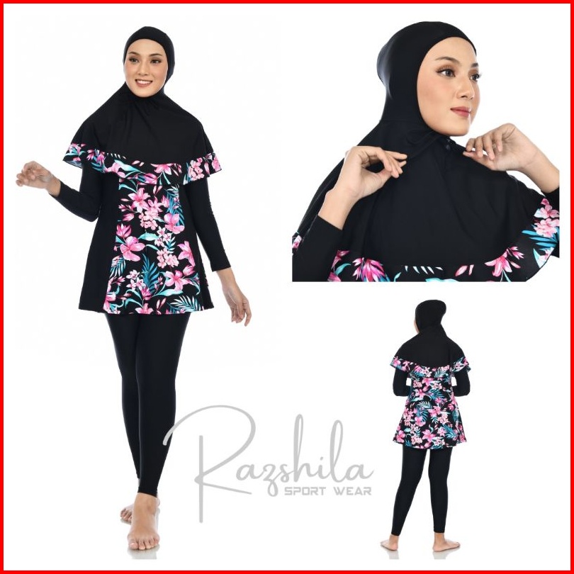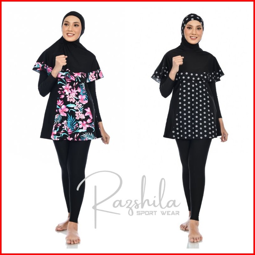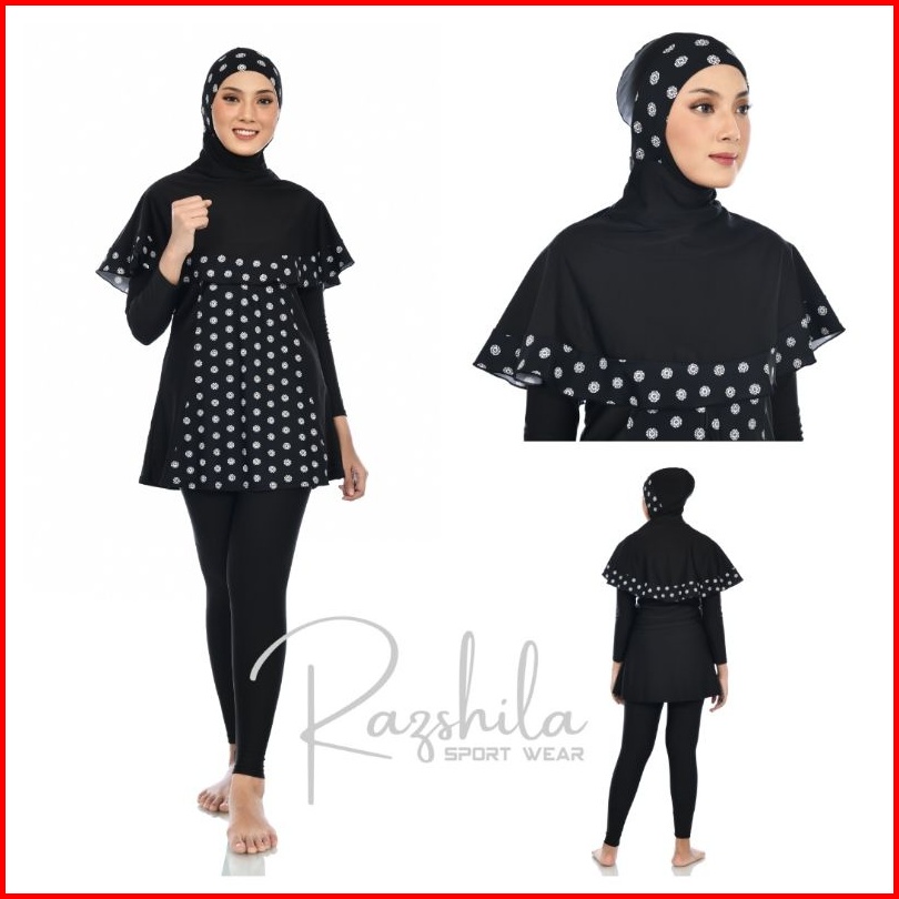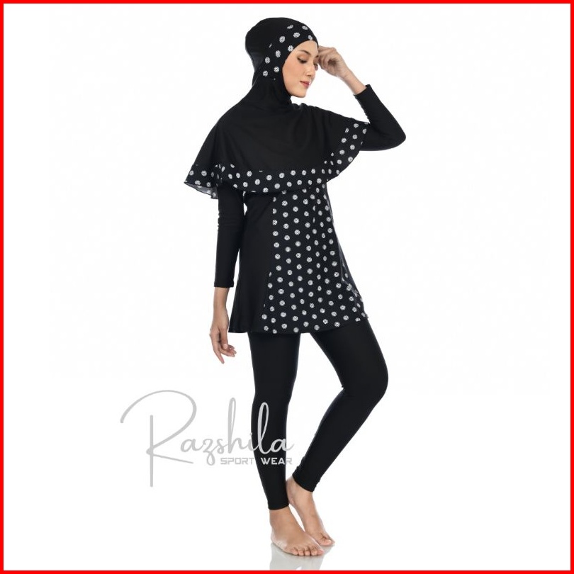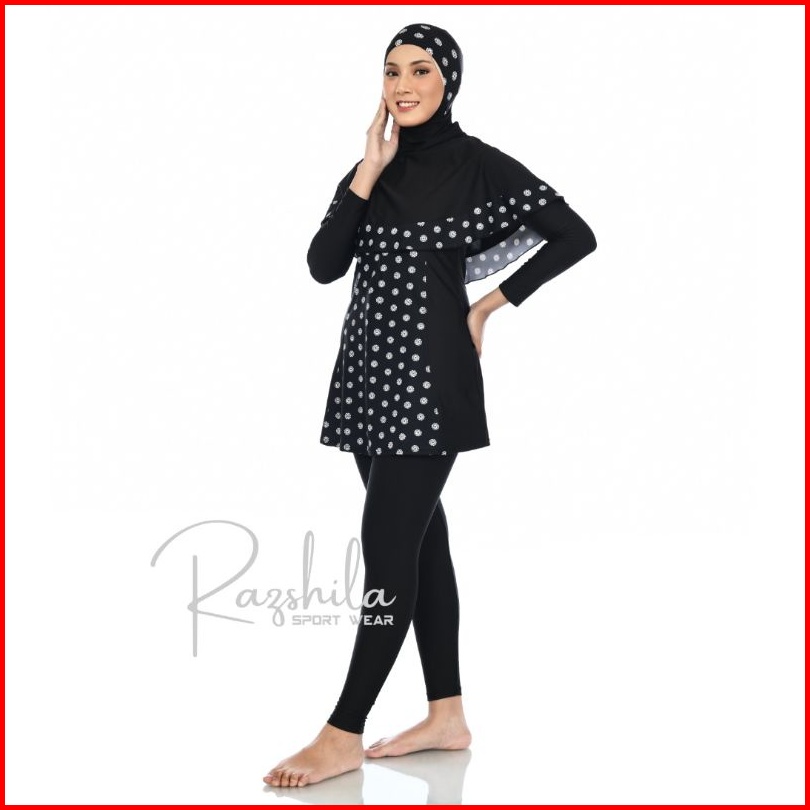 Razshila Sportwear Baju Renang Muslimah Motif Bunga Polkadot