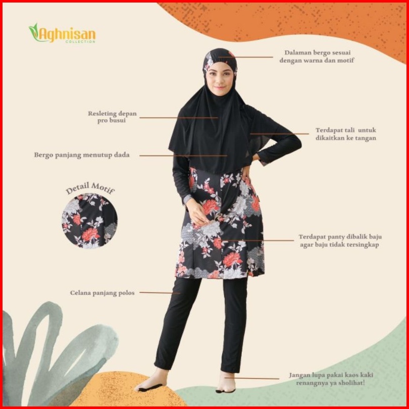 Aghnisan Baju Renang Wanita Muslim Muslimah Dewasa Seri Standar Agh Rgd St