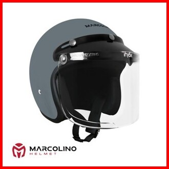 Marine Grey Glossy With Visor Helm Bogo Retro Marcolino Glossy Doff Sni