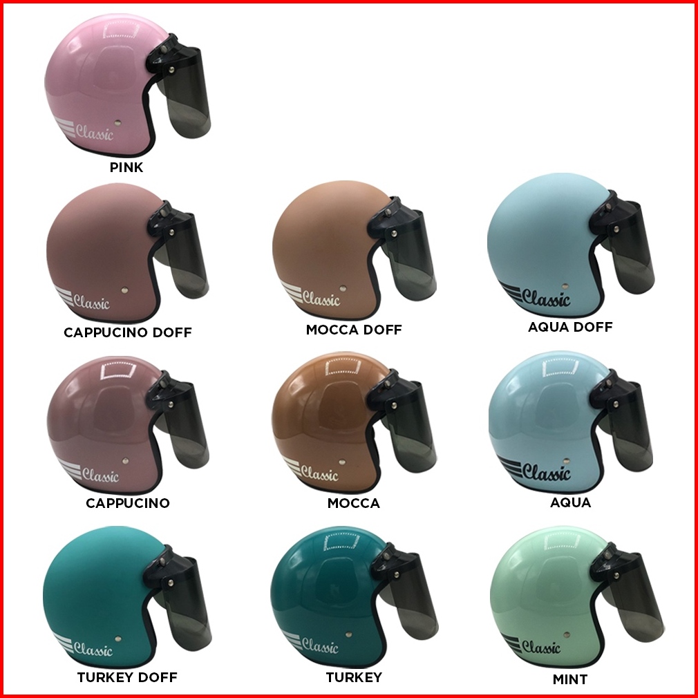Legacy Helm - Helm Bogo Dewasa Classic Warna Pastel Full Leher Retro Sni