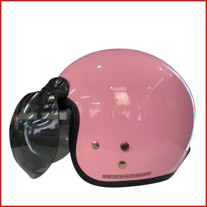 Helm Bogo Retro Ant Classico Pink Coral Kaca Helm