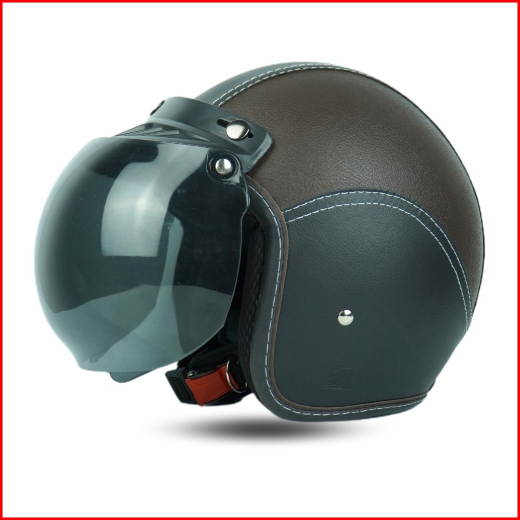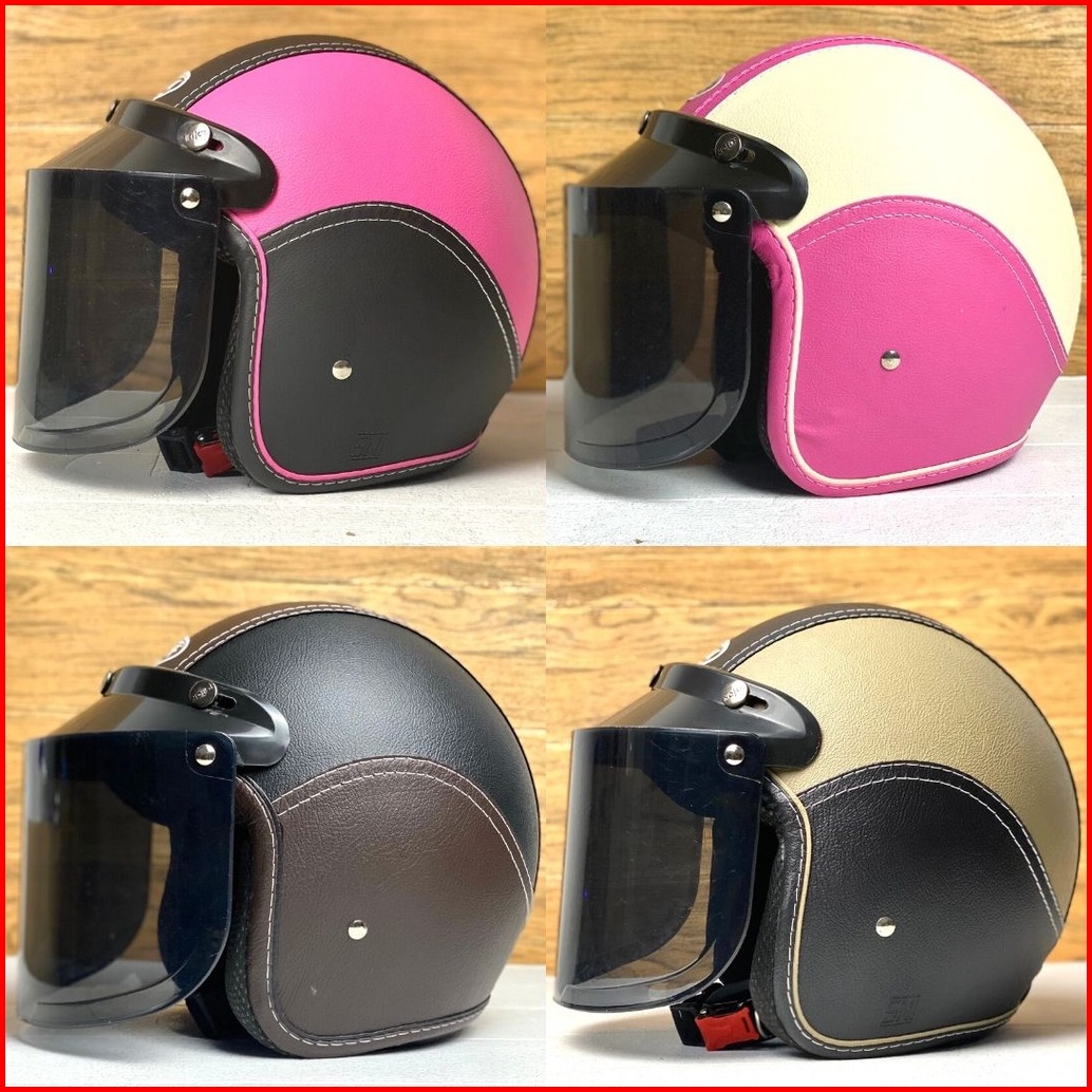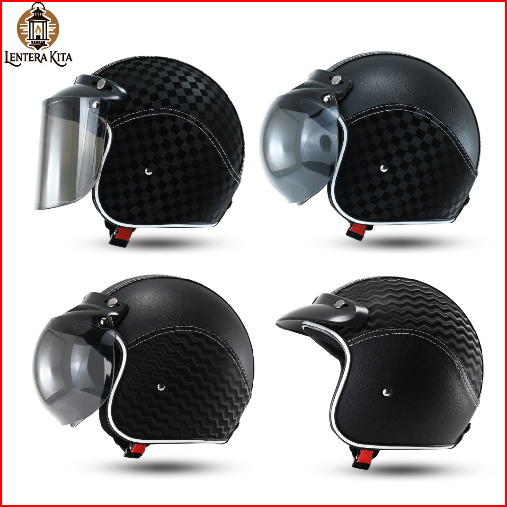 Helm Bogo Retro Kulit Full Leher Dewasa Sni Kaca Datar Wanita Pria