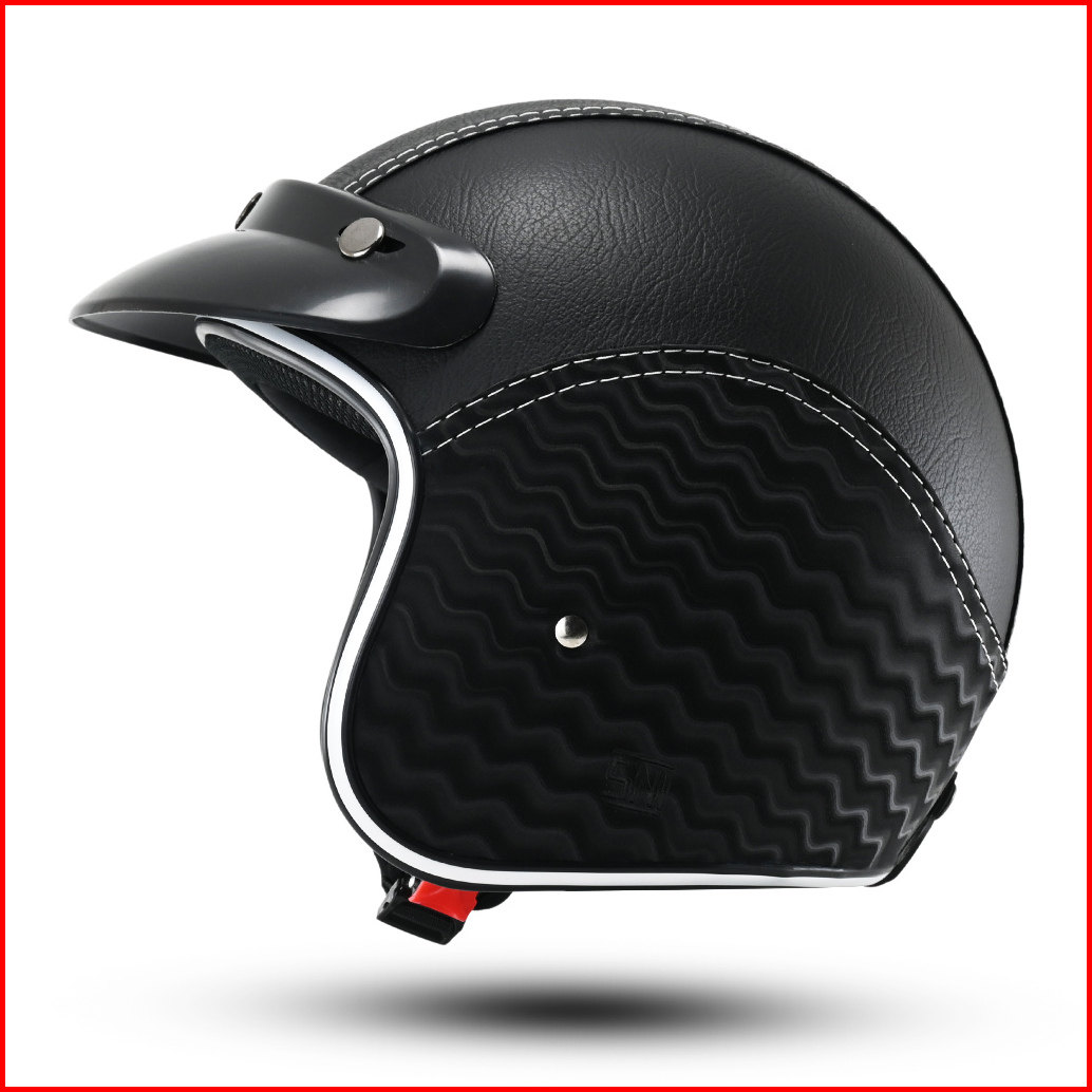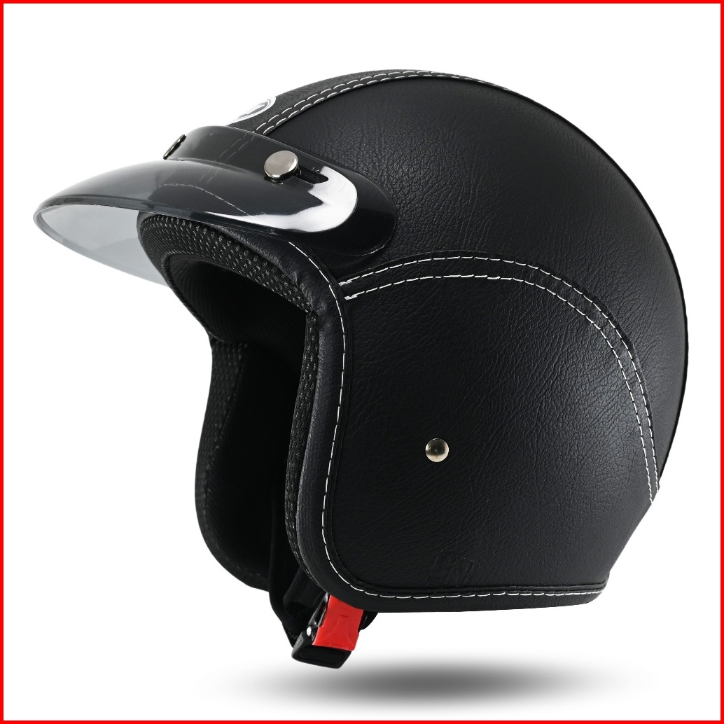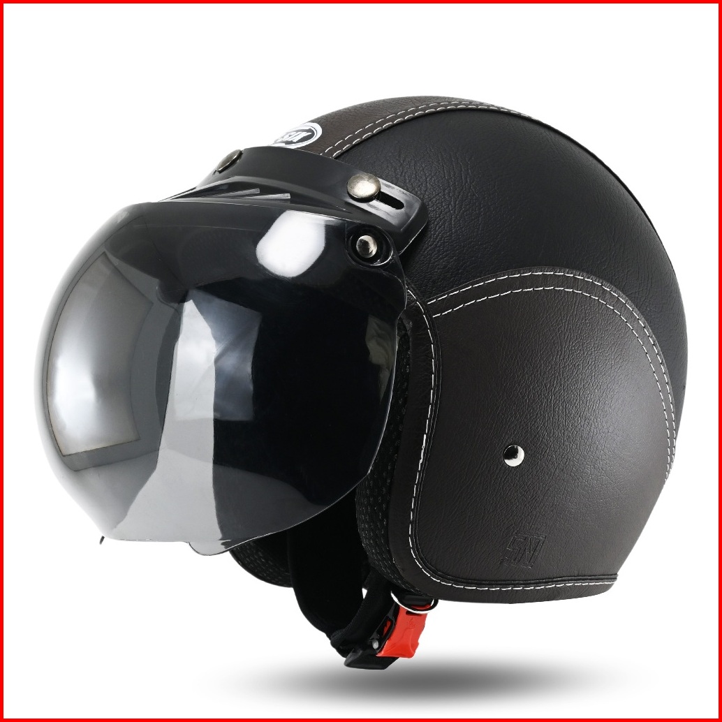 Helm Bogo Retro Kulit Full Leher Dewasa Sni Kaca Datar Wanita Pria
