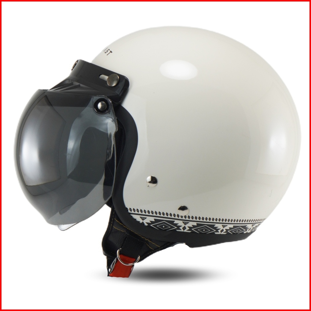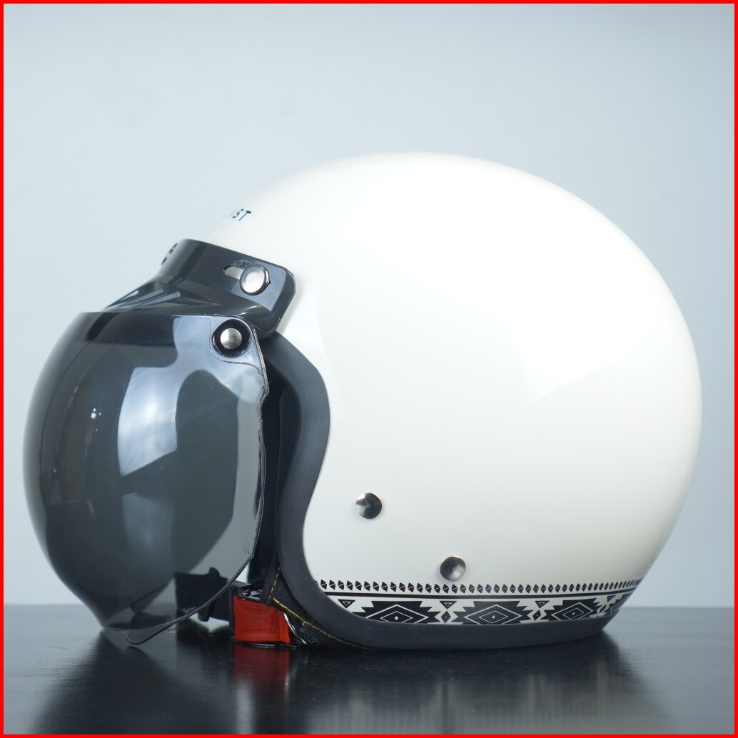 Helem Retro Dewasa Warna Broken White Gloss Helm Bip Bogo Sni Kekinian