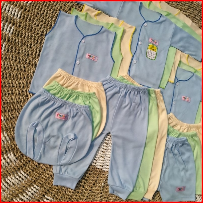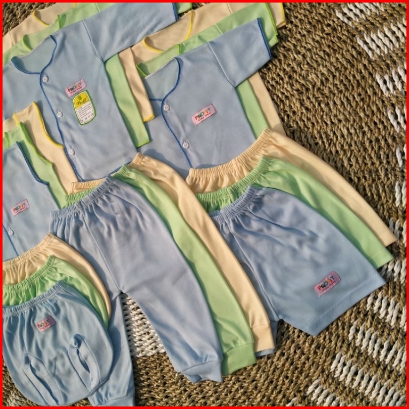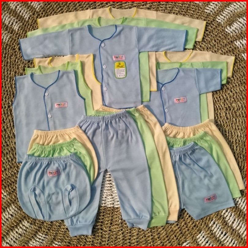 Paket Lengkap 18 Pcs 9 Stel Baju Bayi Newborn 0-3 Bulan Celana Warna Panjang Pendek Kacamata Polos Motif Bordir Termurah