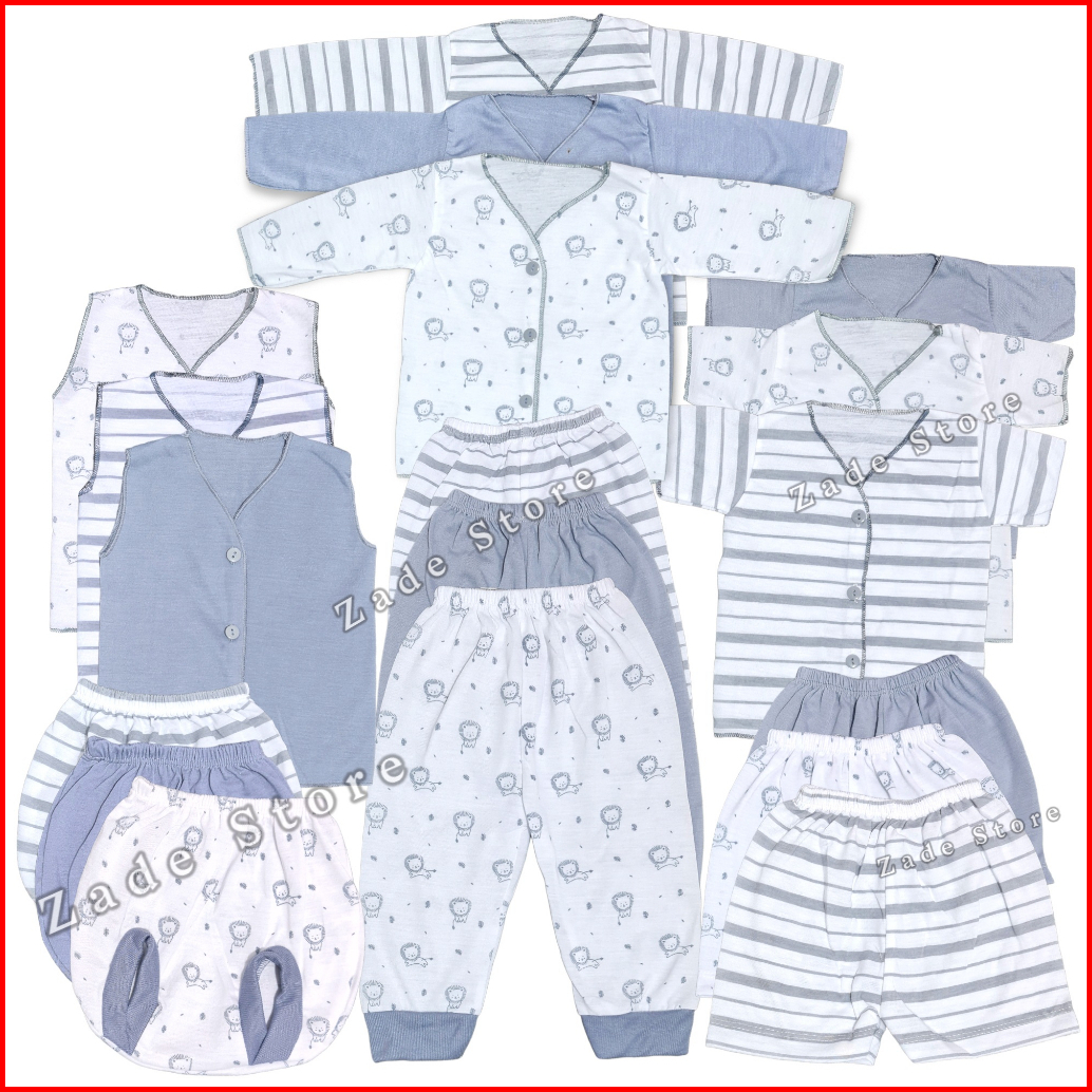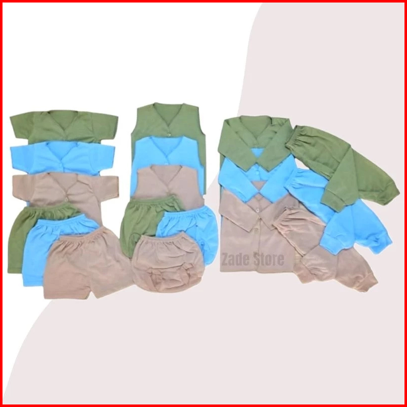 Paket 18 Pcs Setelan Baju Bayi Newborn Motif Polos Perlengkapan Baju Bayi Newborn