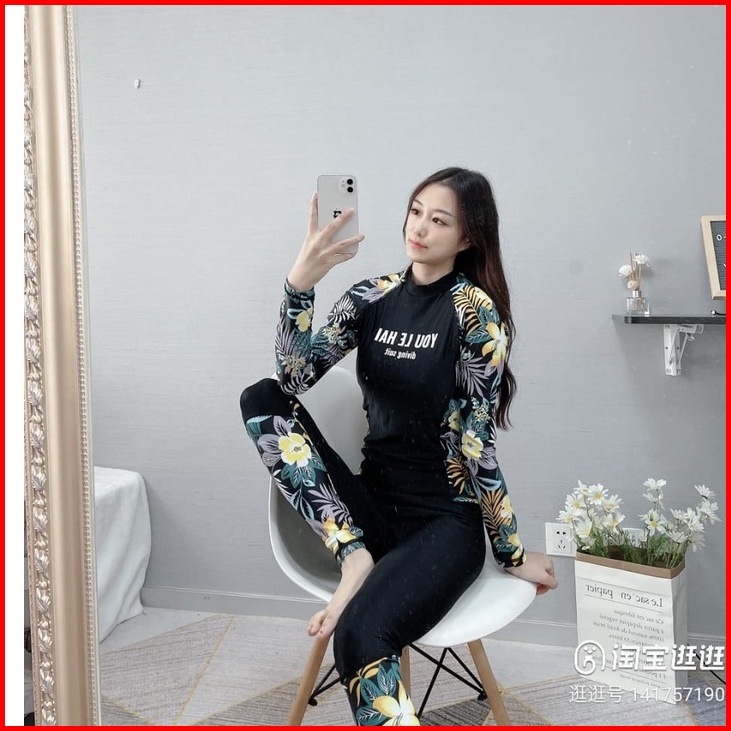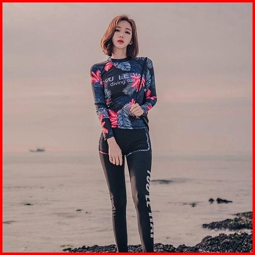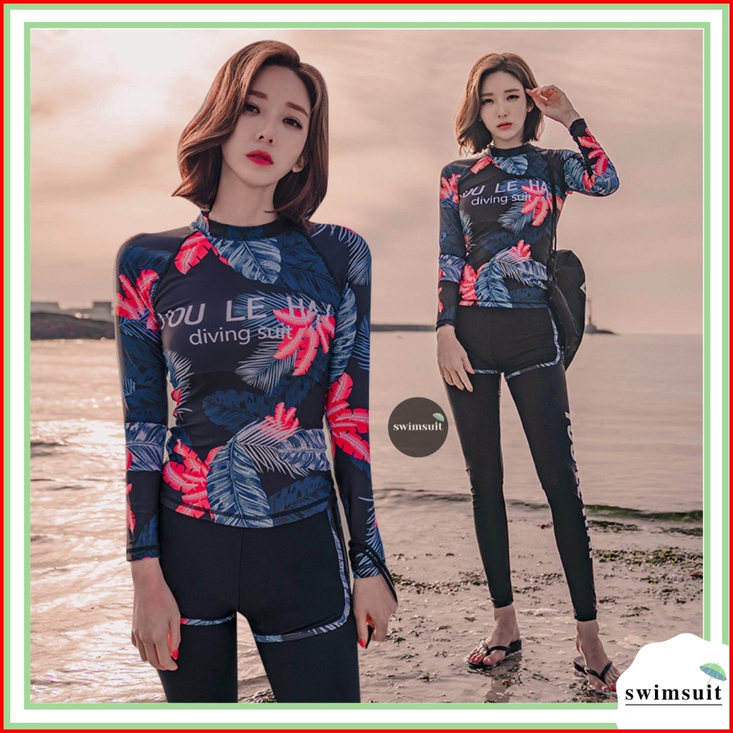 Swimsuit Baju Renang Wanita Muslim Set Panjang Motif Floral Import Premium 9055