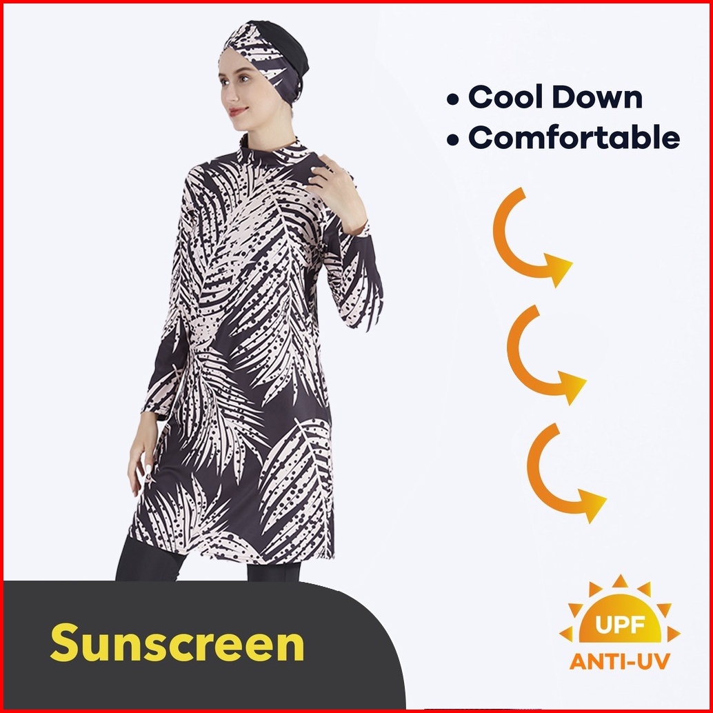 Motive Force Pakaian Renang Muslimah 4 Buah Set Daun-daun Swimwear Collection