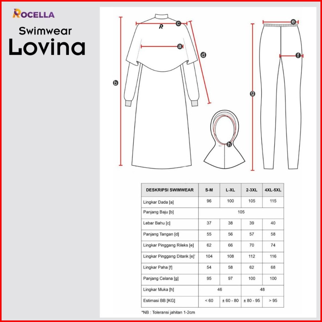 Baju Pakaian Renang Berenang Wanita Muslim Muslimah Dewasa Syari Hijab Menutup Dada Rocella Lovina