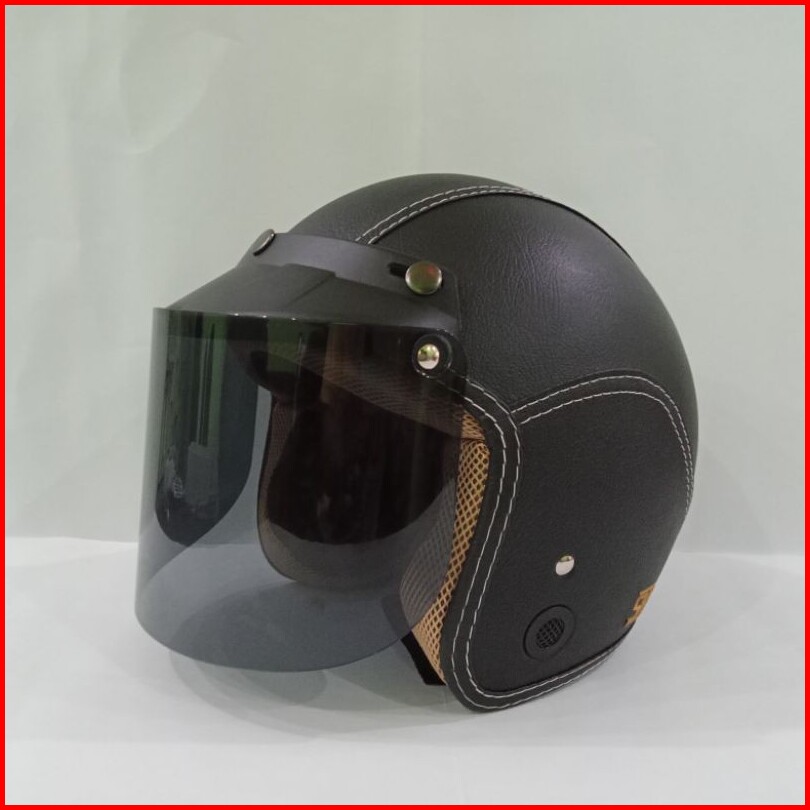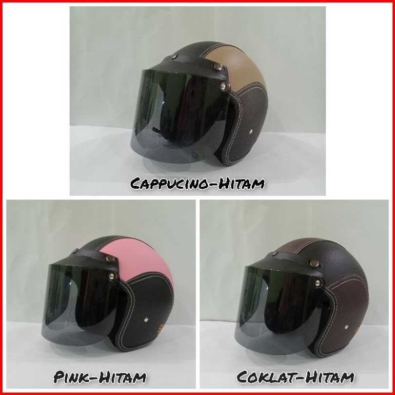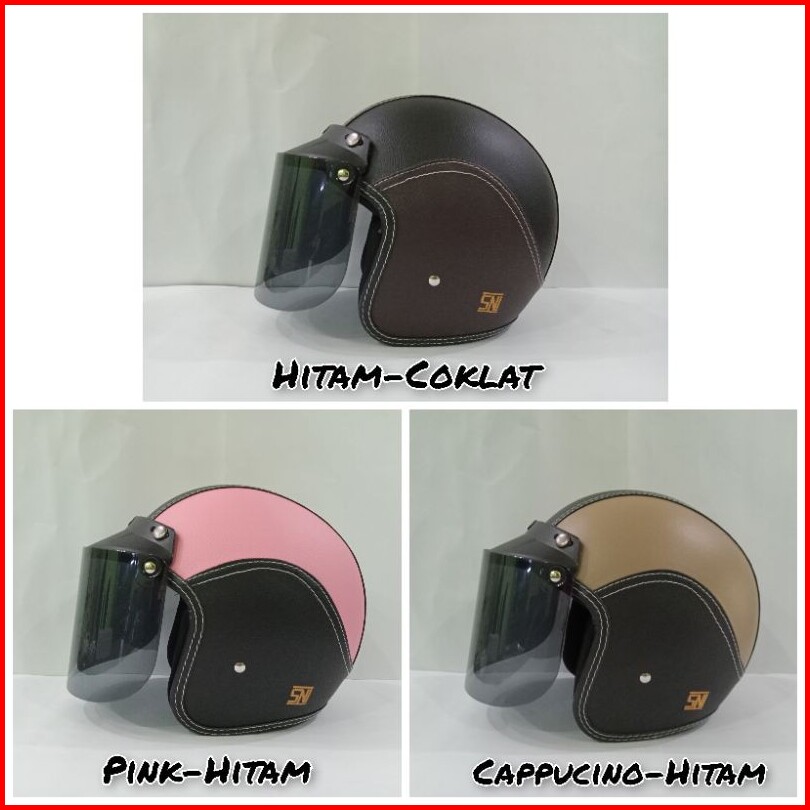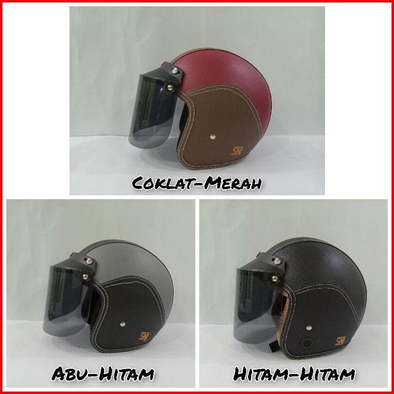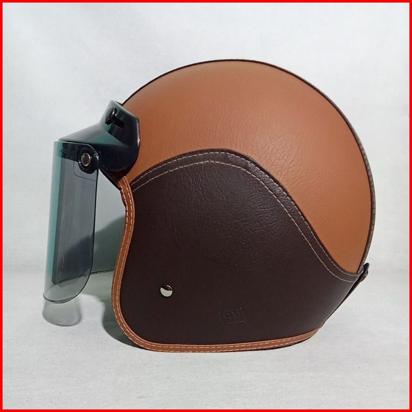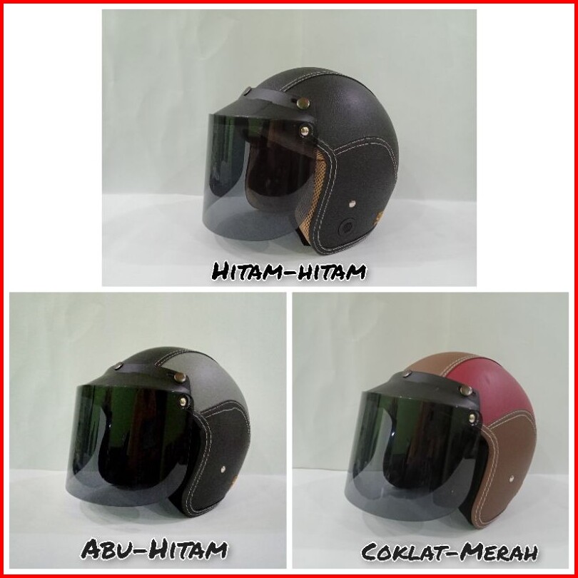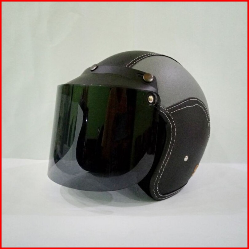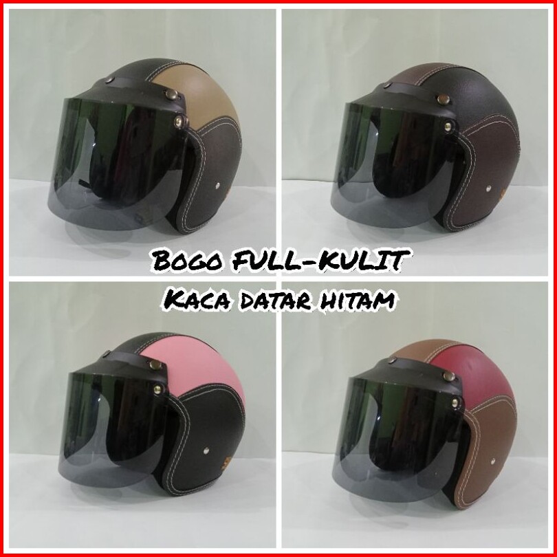 Helm Bogo Retro Full Kulit Plus Kaca Datar Hitam