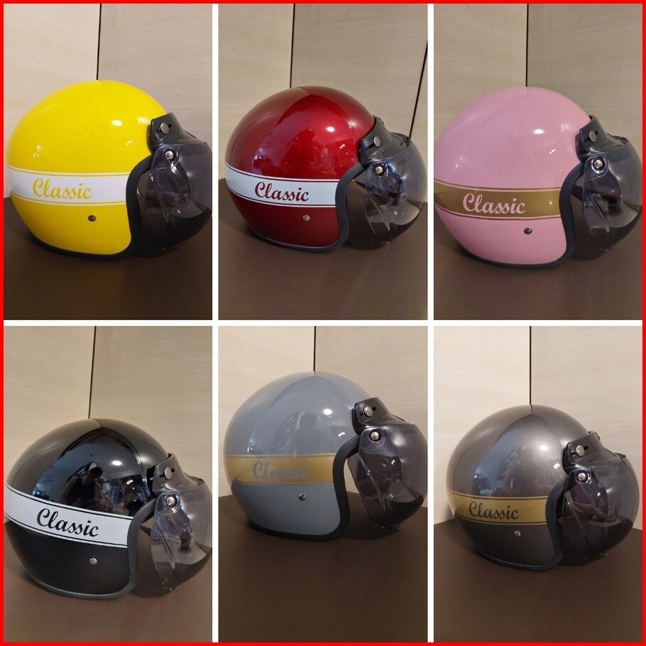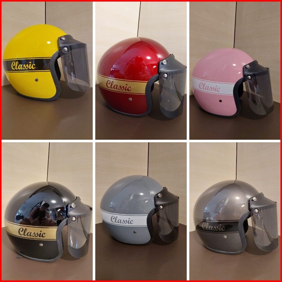 Helm Bogo Retro Dewasa New Classic Glossy With Visor Pria Wanita Sni