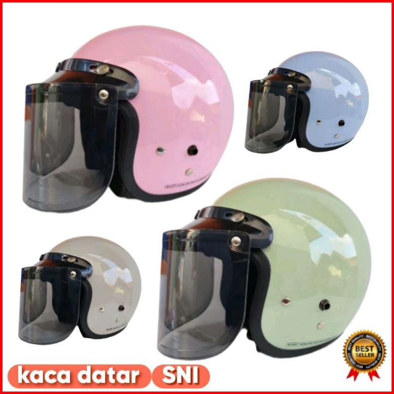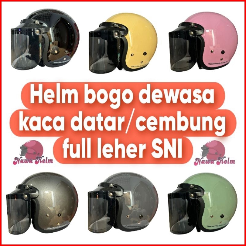 Helm Dewasa Remaja Bogo Retro Sni Premium Kaca Datar Full Leher Pria Dan Wanita