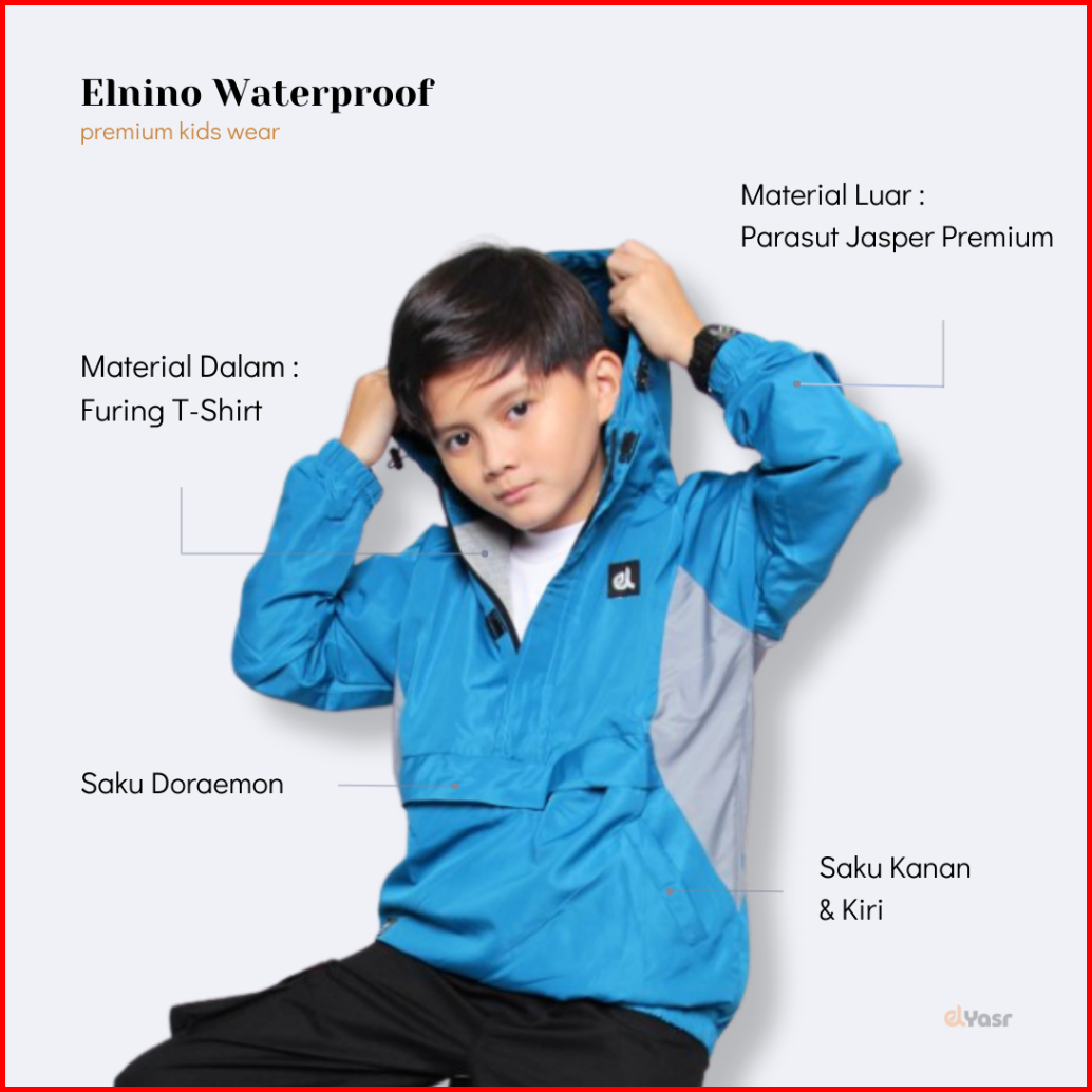 Elyasr - Jaket Anak Laki Laki Waterproof Windproof Tahan Air Tahan Angin Premium 3-13 Tahun Anorax