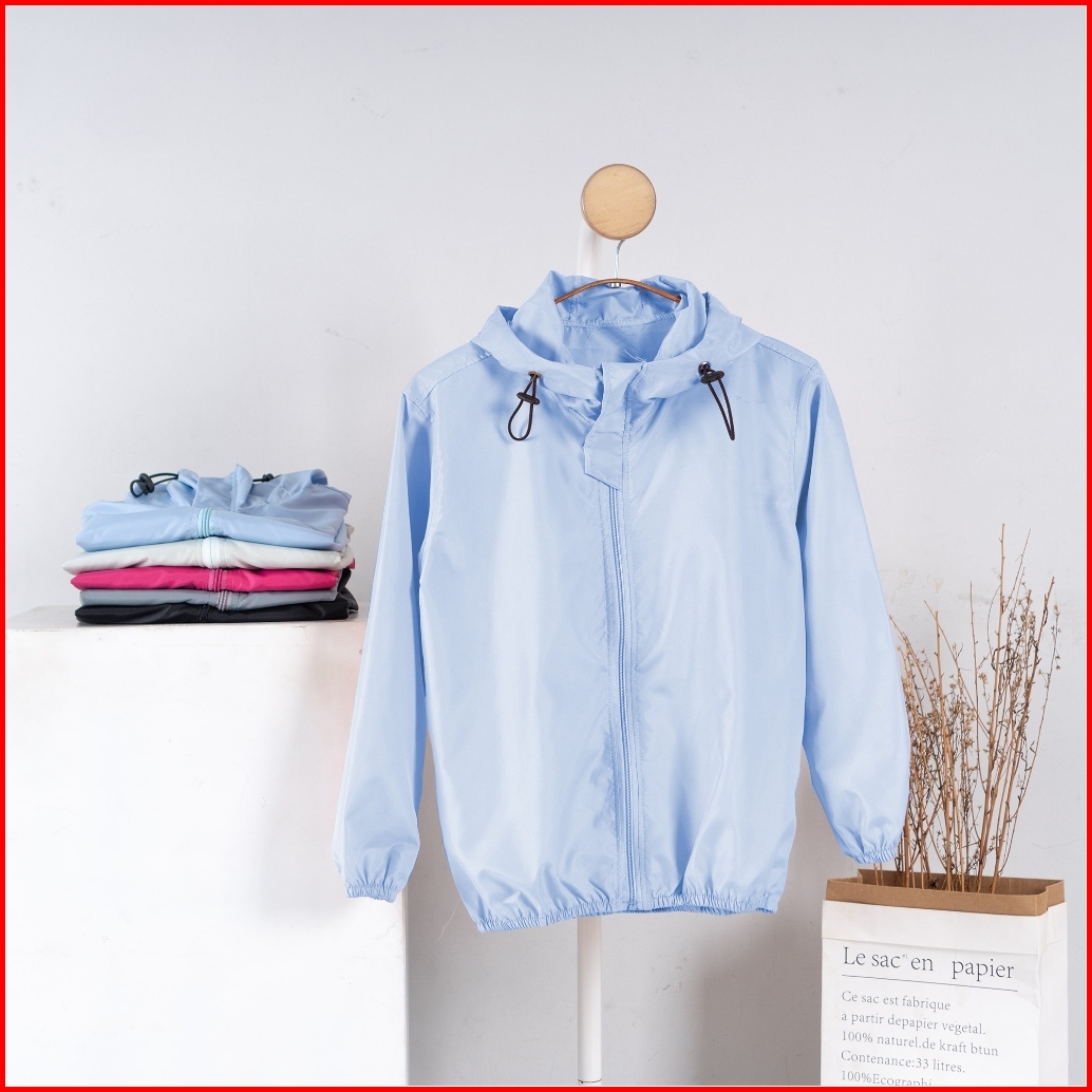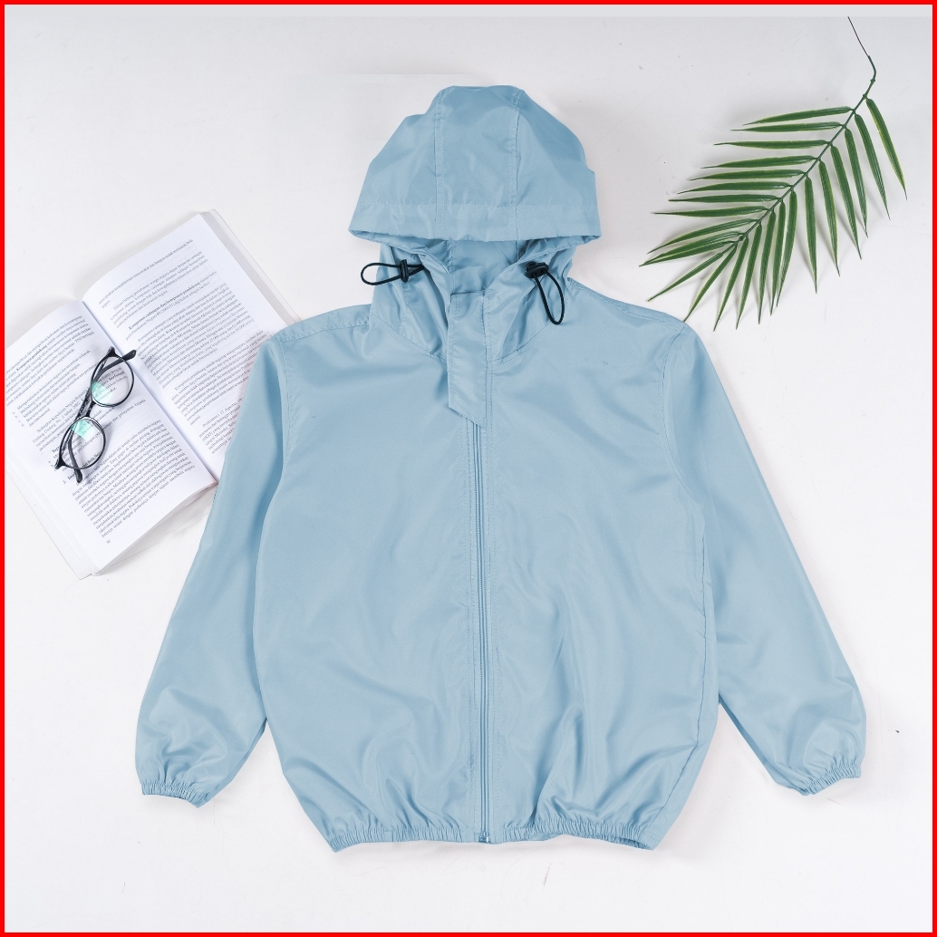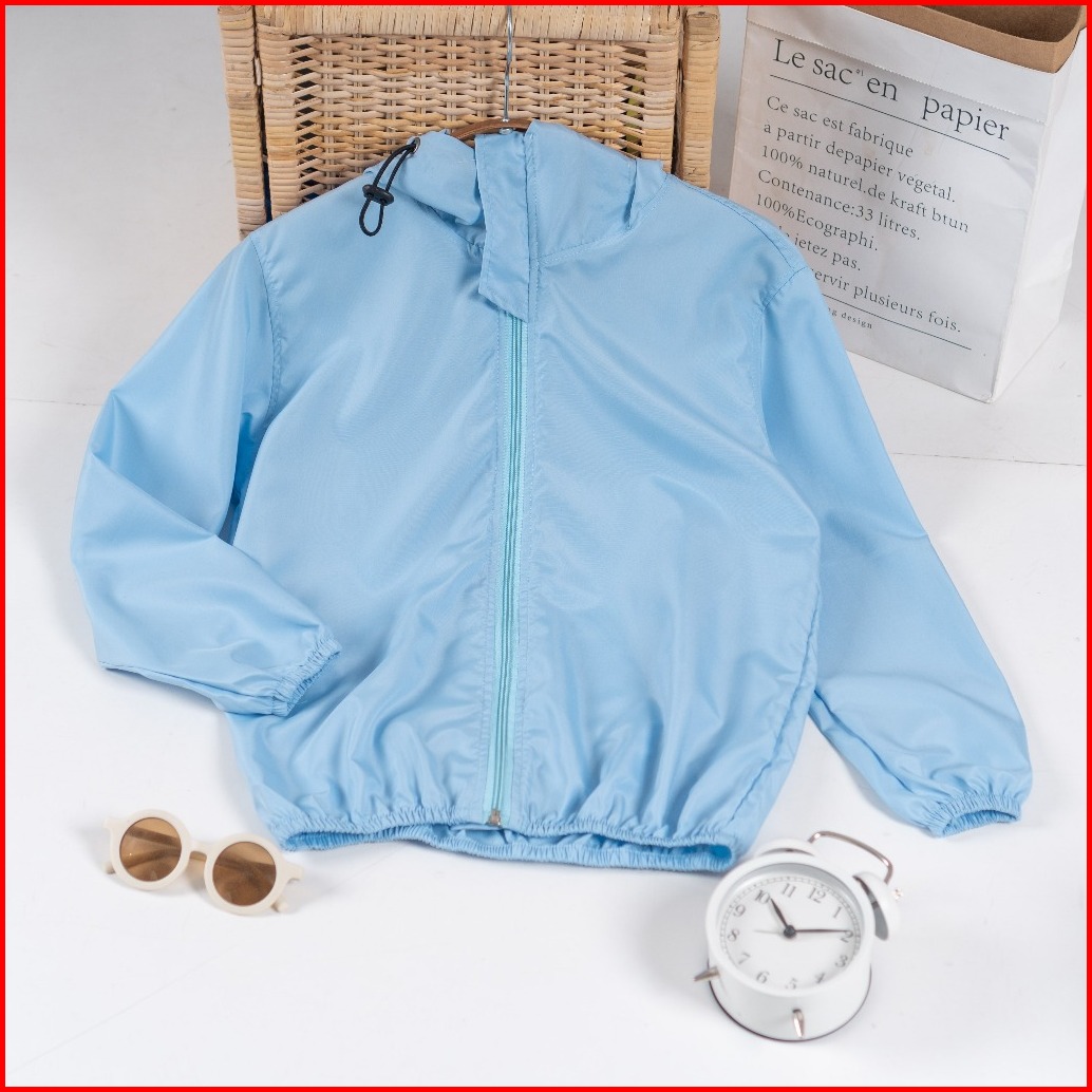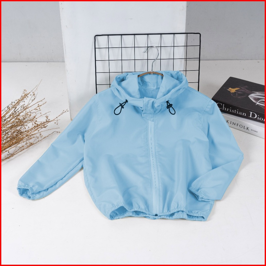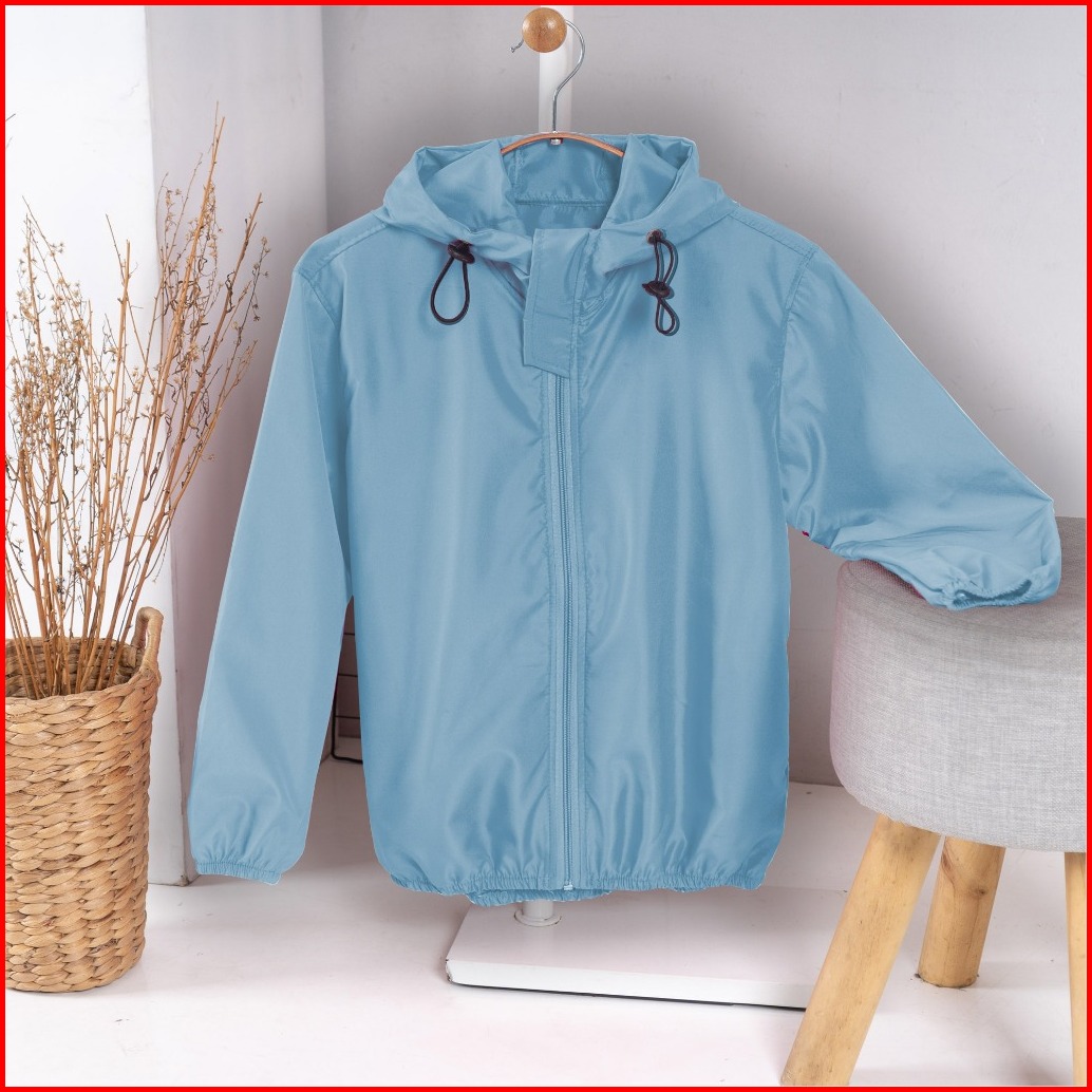 Jaket Parasut Anak Semi Waterproof Polos Warna Baby Blue Unisex Usia 3 Sampai 12 Tahun