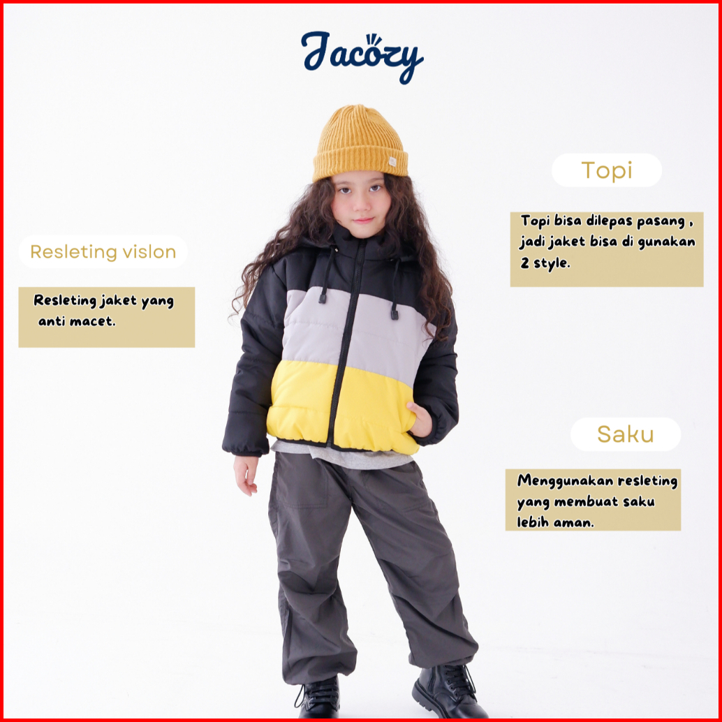 Jacozy Jaket Winter Tebal Anak Bahan Parasut Varsha