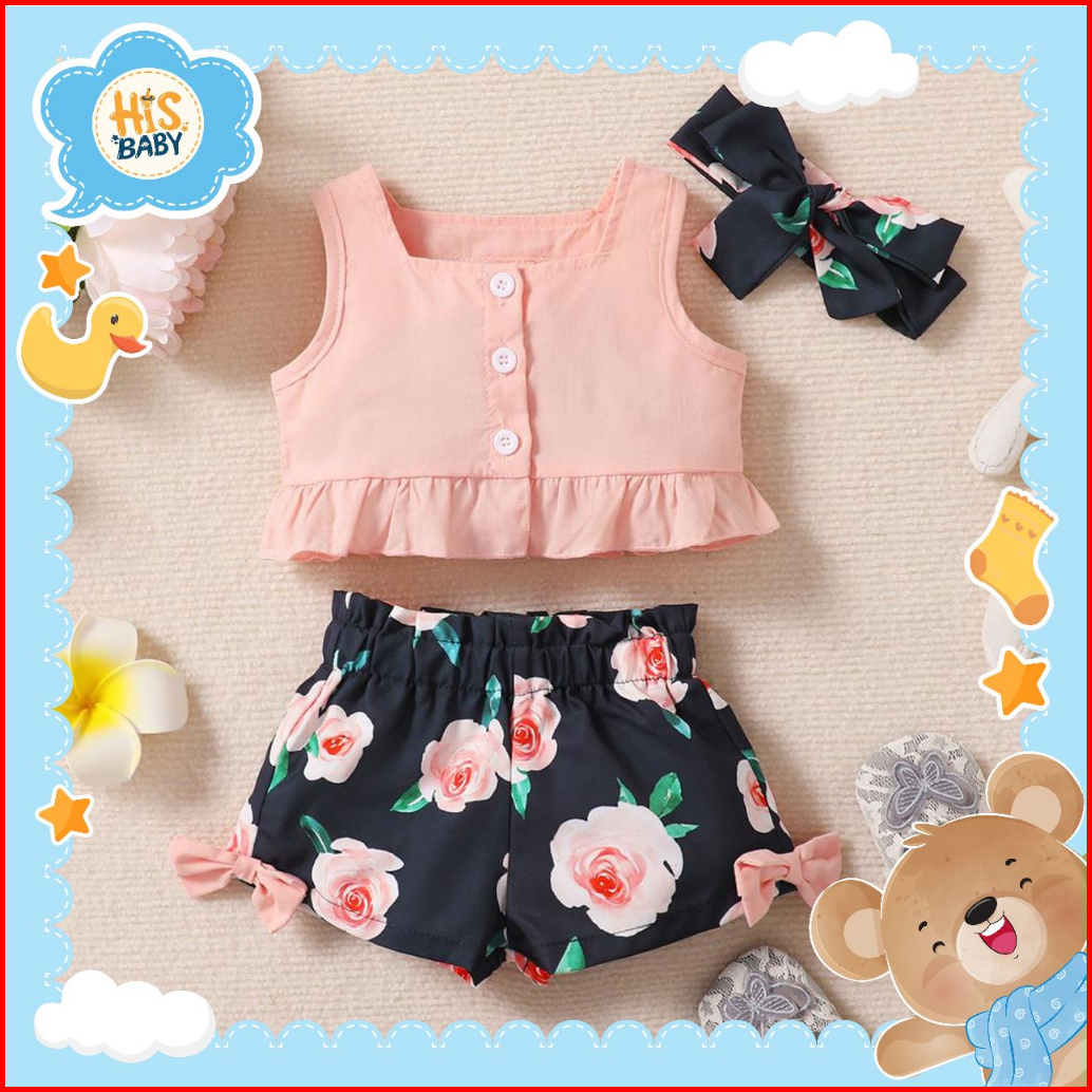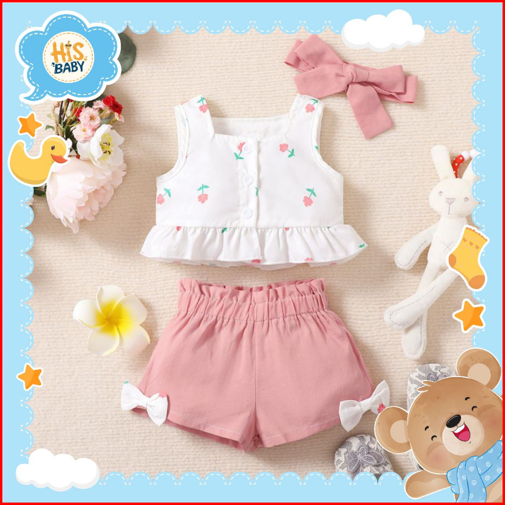 His.baby Newborn-18 Bulan Oneset Setelan Kutung Baby Anak Perempuan Baru Lahir Import Premium D14