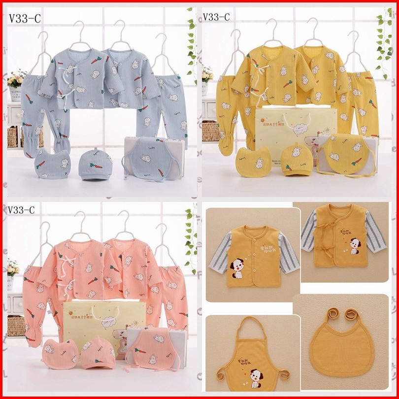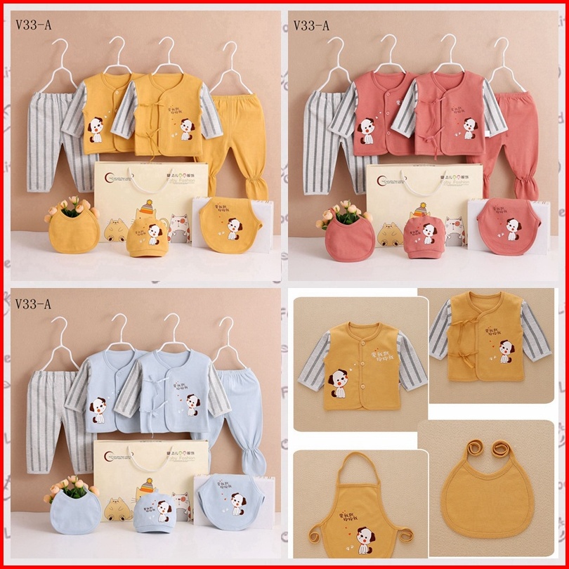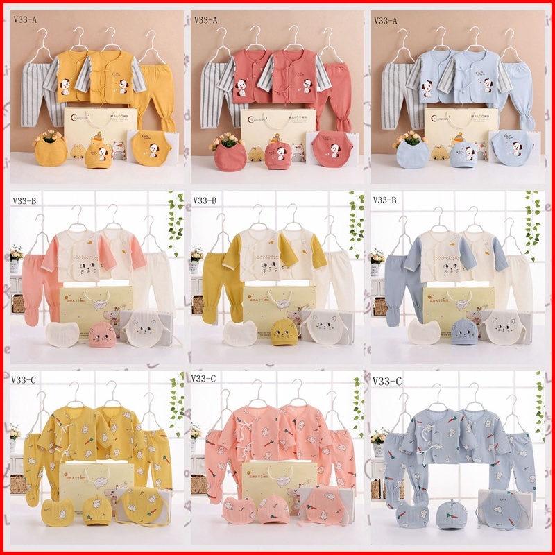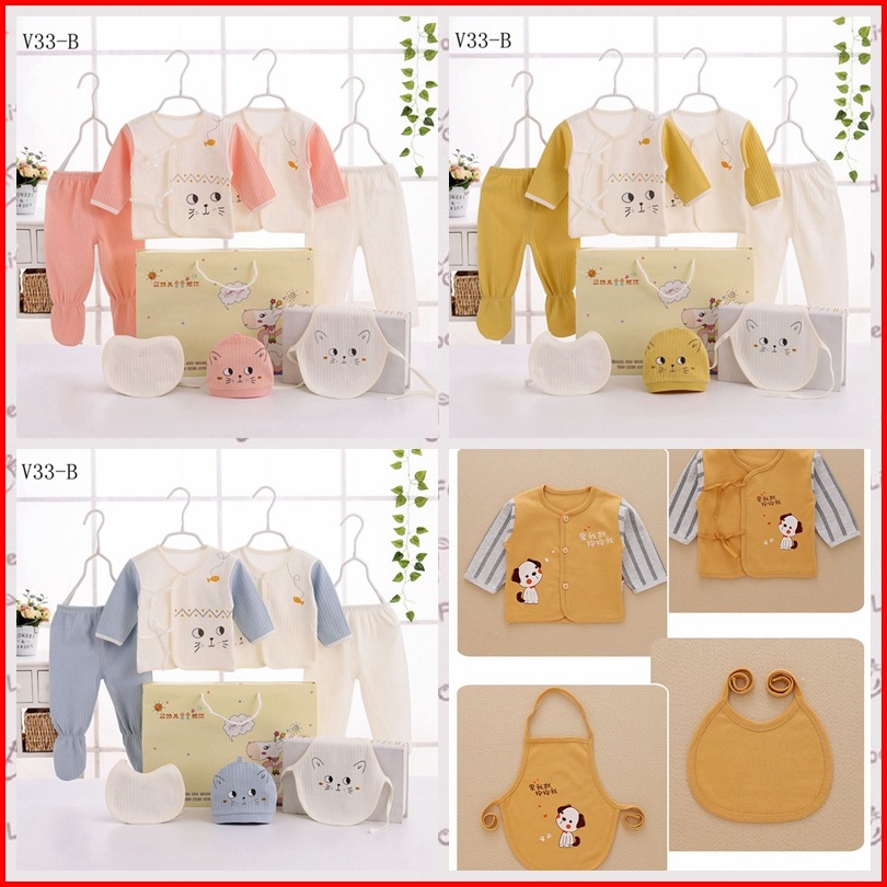 Bayi Baru Lahir Baju Set Paket Hadiah Pakaian Bayi Unisex Pakaian Bayi Katun Kartun 0-3 Bulan V33-d