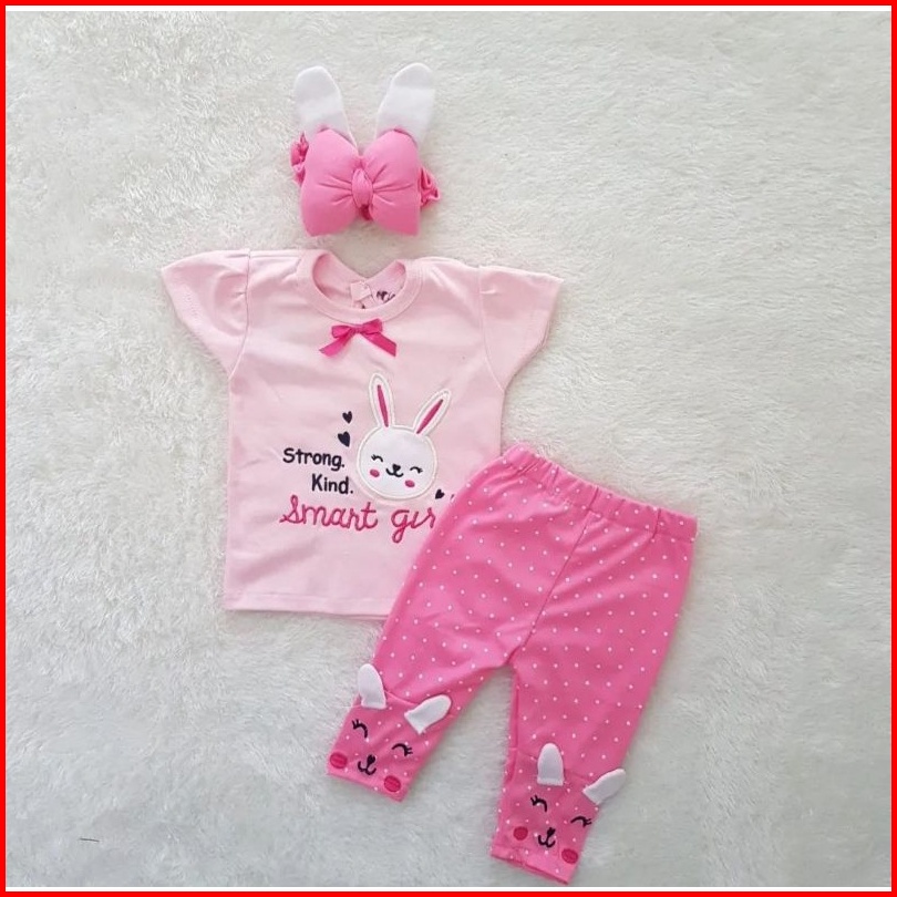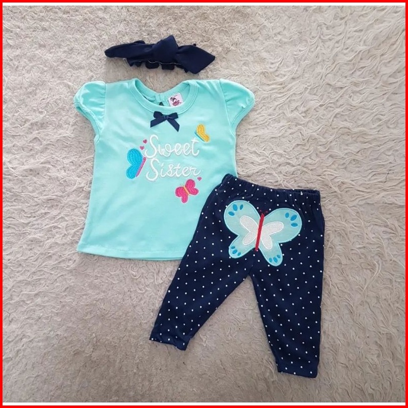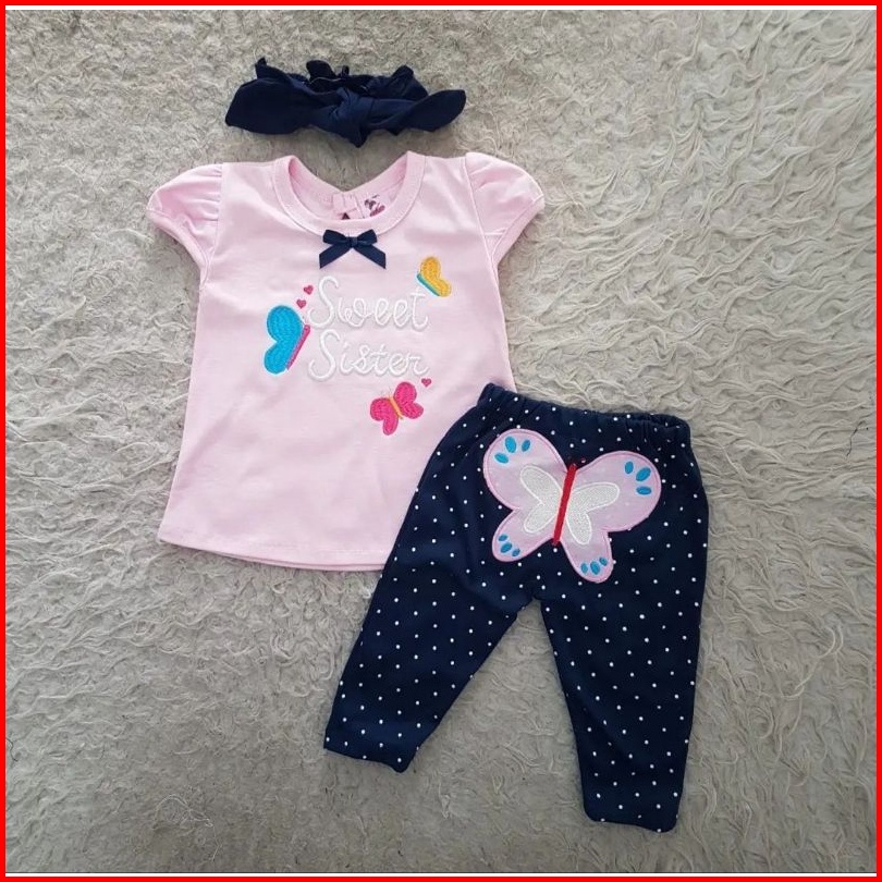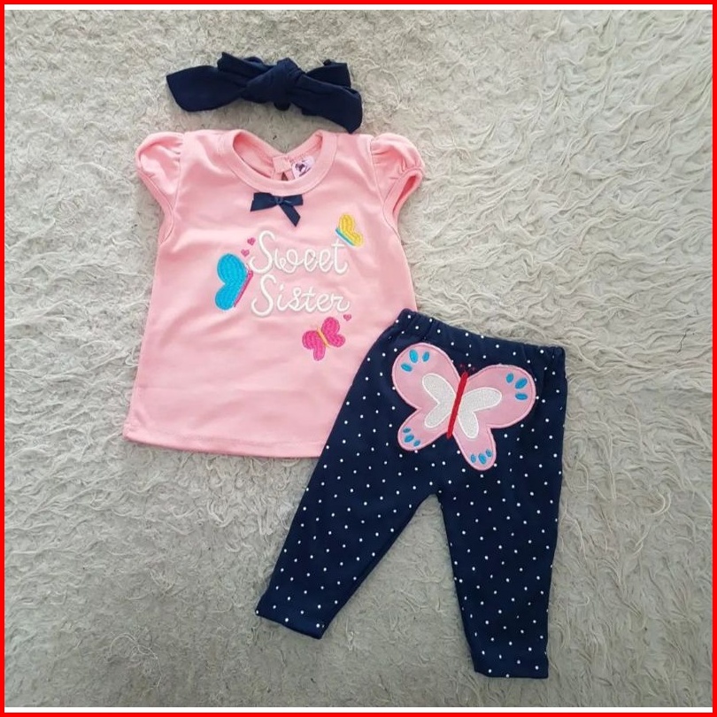 Baju Bayi Perempuan Setelan 0-8 Bulan Sweety Bando Set Babygirl Kado Gift Hadiah Lahiran