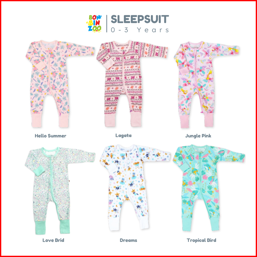 Bonbinzoo - Sleepsuit Resleting Baby Newborn Girls Jumper Anak Bayi Perempuan 0 - 3 Tahun
