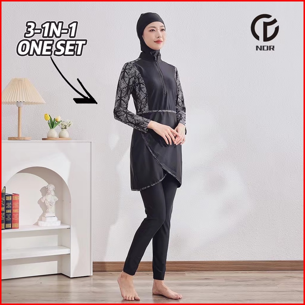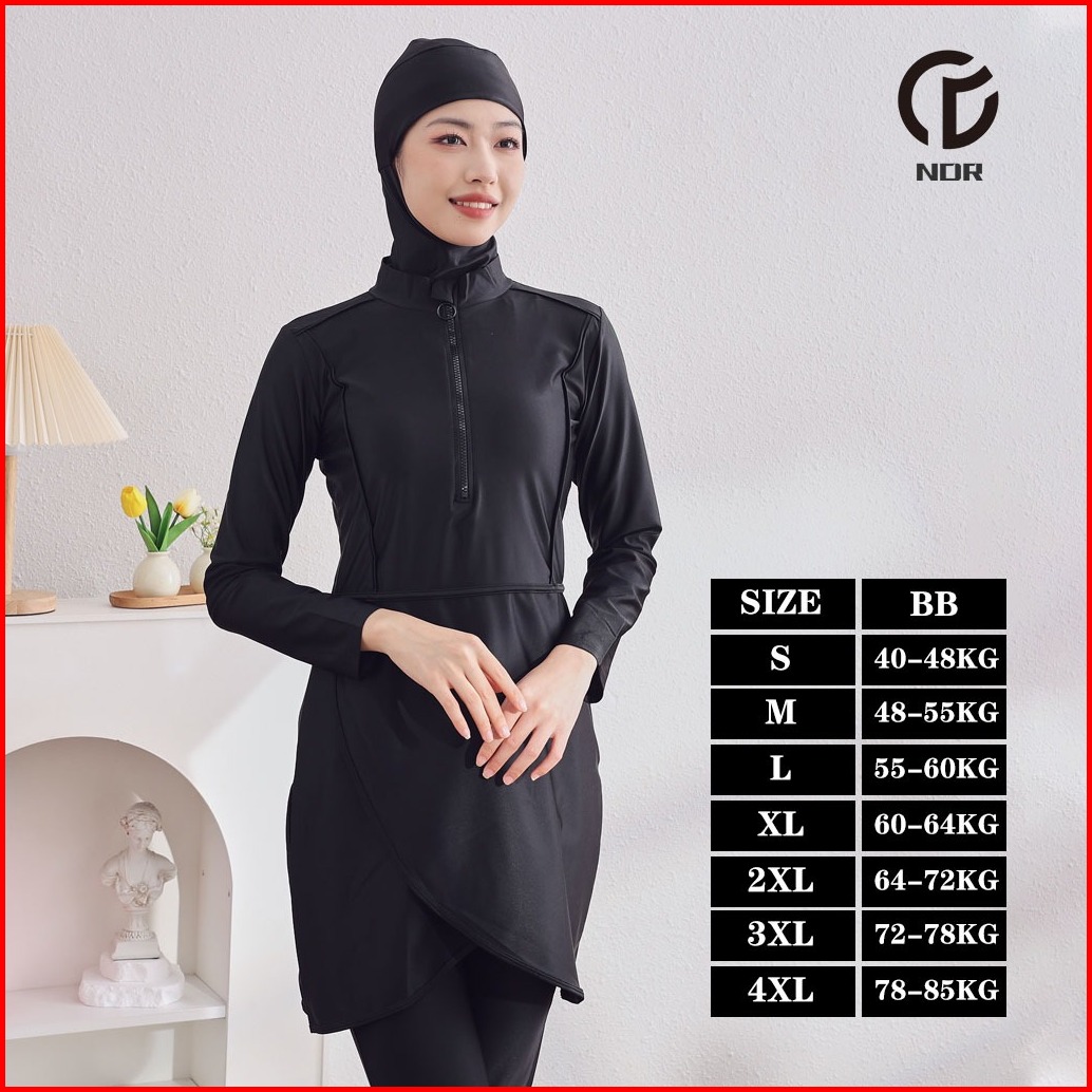 Pakaian Renang Muslim Polos Polyester Baju Renang Muslim Muslimah Wanita Dewasa Hijab Poliester Baju Renang Muslim