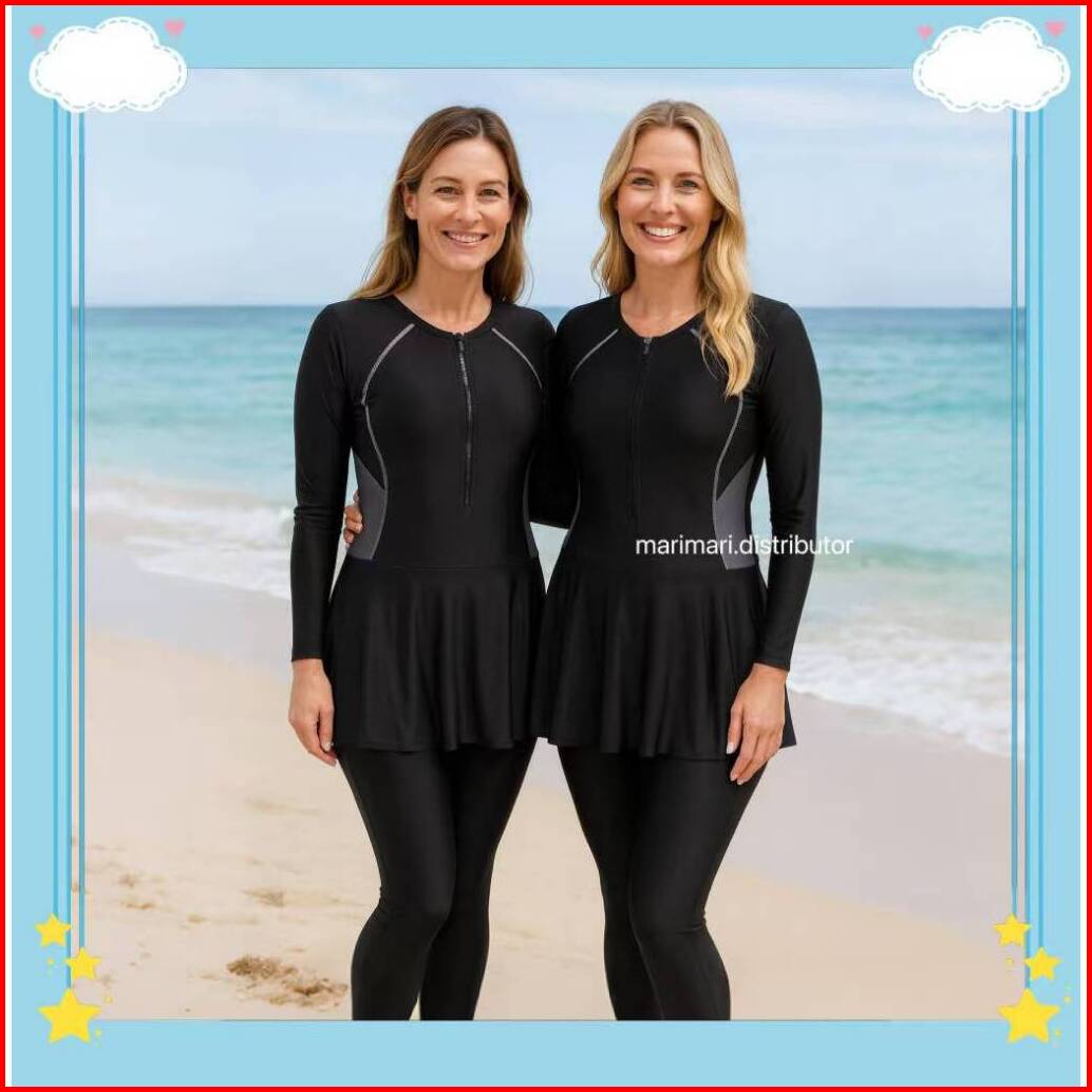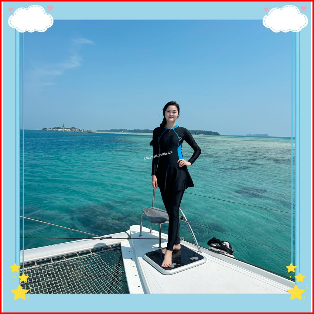 39080 Baju Renang Dewasa Hijab Muslimah Muslim Lengan Panjang Celana Polos Nyambung Murah Antiuv