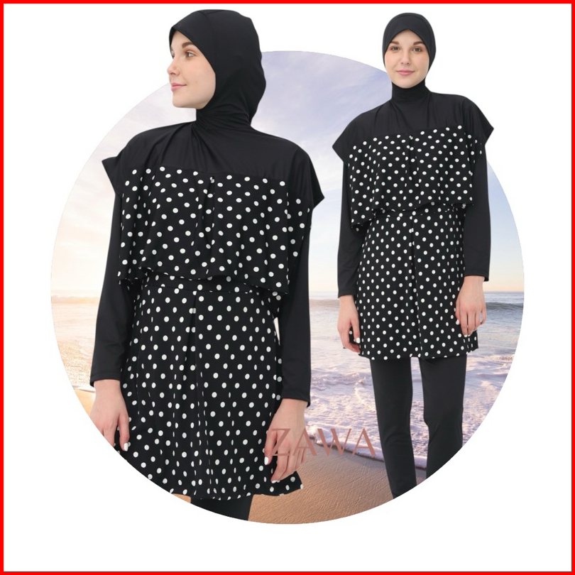 Damla Sport Muslimah Swimwear Polkadot - Baju Renang Wanita Hijab Syari Remaja