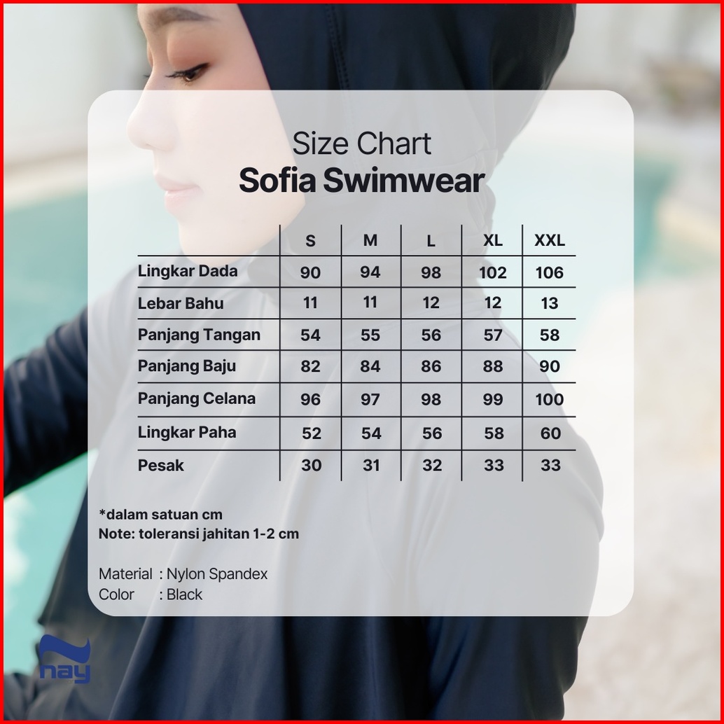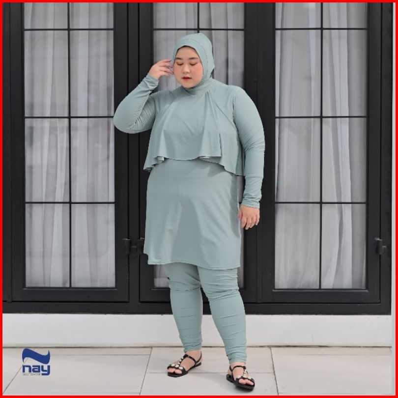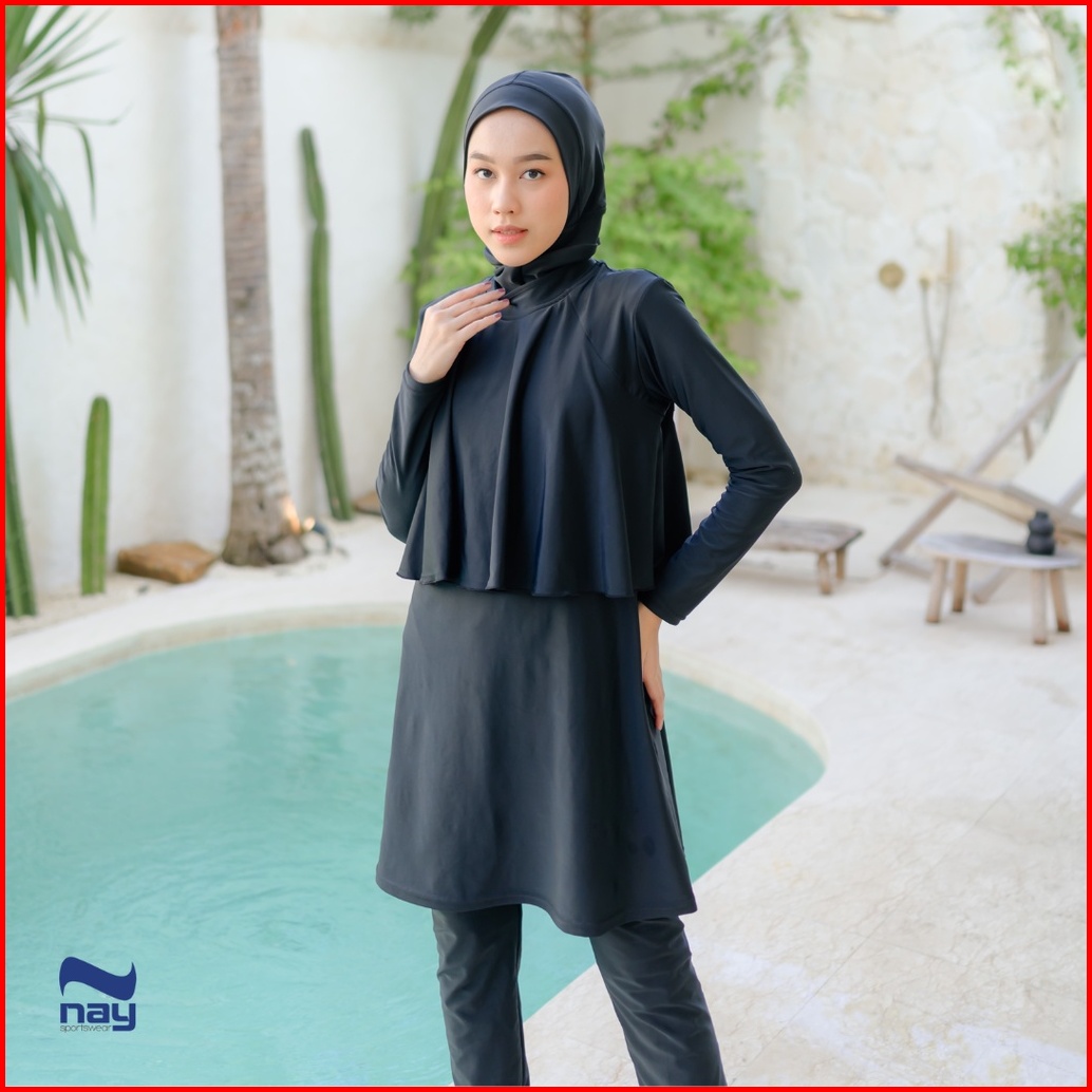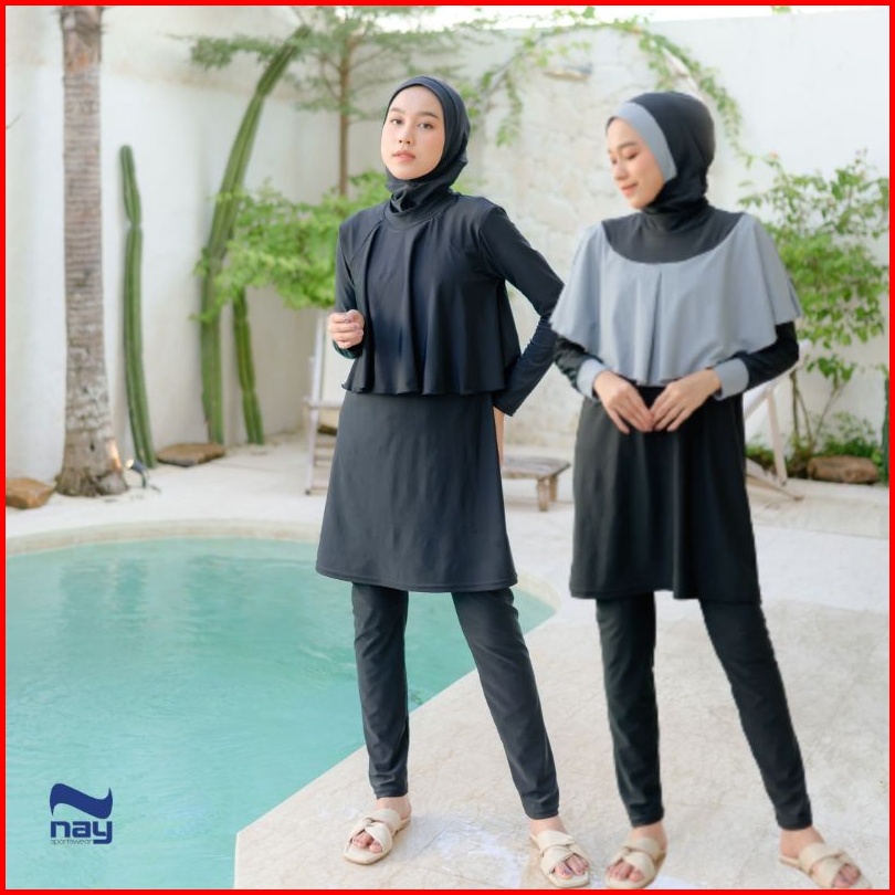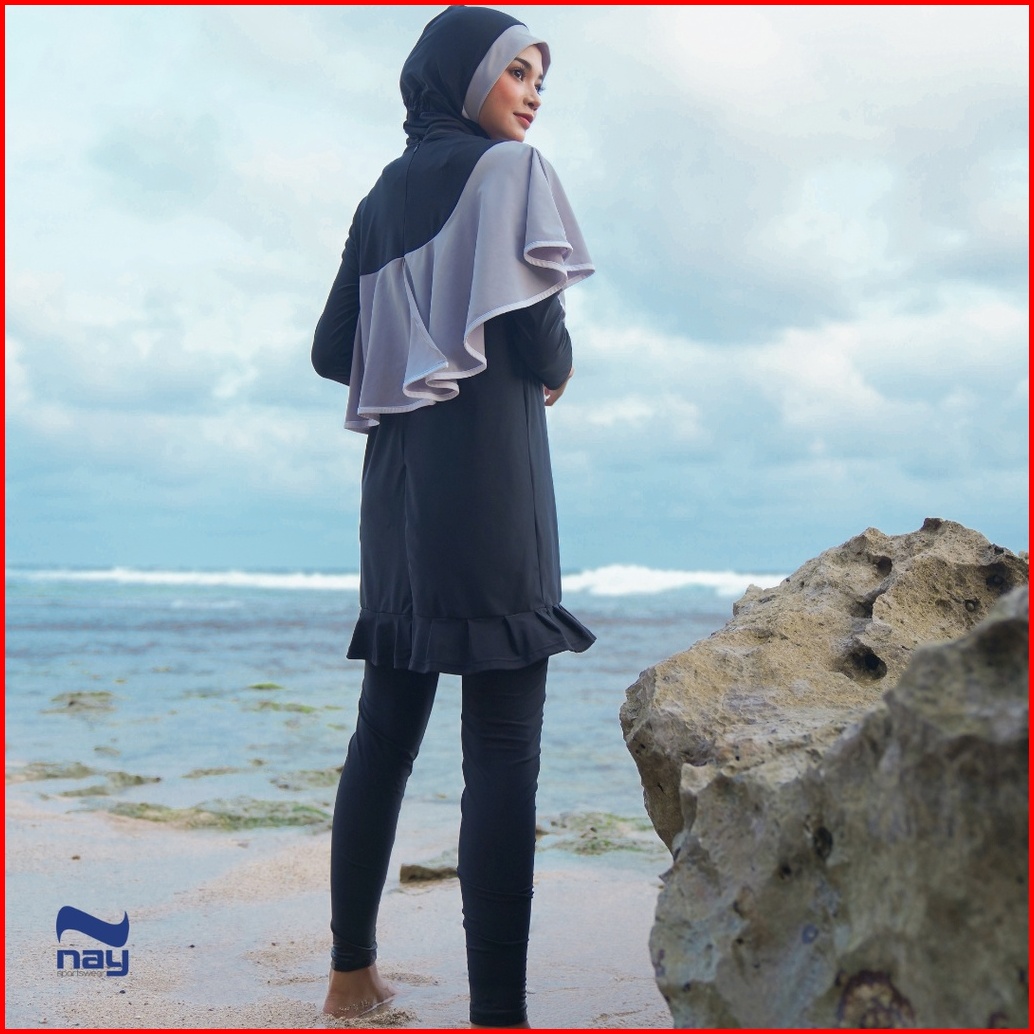 Nay Swimwear Baju Renang Berenang Wanita Cewek Perempuan Muslim Muslimah Modis Premium Jumbo Syar I Adem Hitam Abu Grey